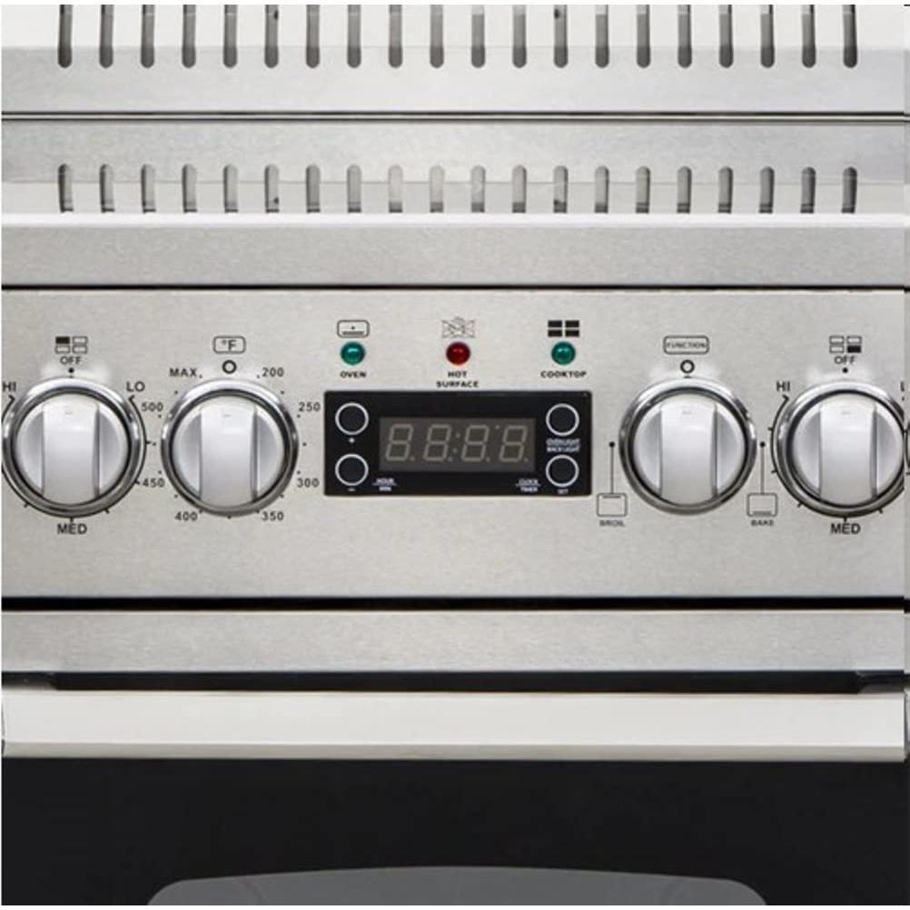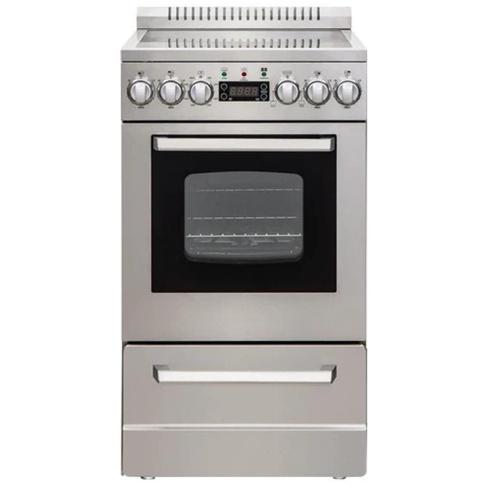 Details: The Avanti ELITE Series 20-Inch Electric Range Oven is the ideal solution for compact kitchens, studio apartments, RVs, and vacation homes. Designed to save space without compromising performance, it features a 2.0 cu. ft. oven capacity and a smooth, easy-to-clean Euro-Kera black glass top with 4 cooking zones (two 8-inch and two 6-inch burners). The oven includes 2 racks, a broiler with a pan, and an auto-close storage drawer for convenience. The seamless framed glass oven door, 6 LED backlit control knobs, and digital timer/clock enhance functionality and style. With anti-tip brackets, ADA compliance, and a 2-Year Manufacturer Limited Warranty, this range is a reliable and stylish addition to any small kitchen setup.