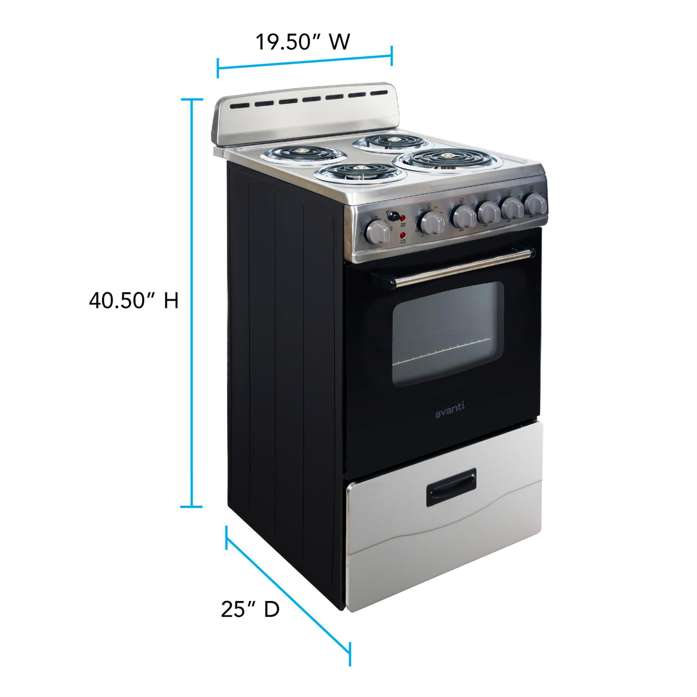 Avanti ERU200P3S Electric Range Oven Compact Design, 2.1-Cu.Ft. Capacity with 4 Coil Burners, Framed Glass Door, Storage Drawer and Broiler with Pan Perfect for Apartments, 20-Inch, Stainless Steel Sale