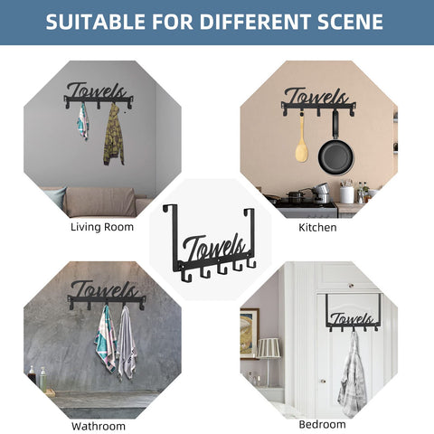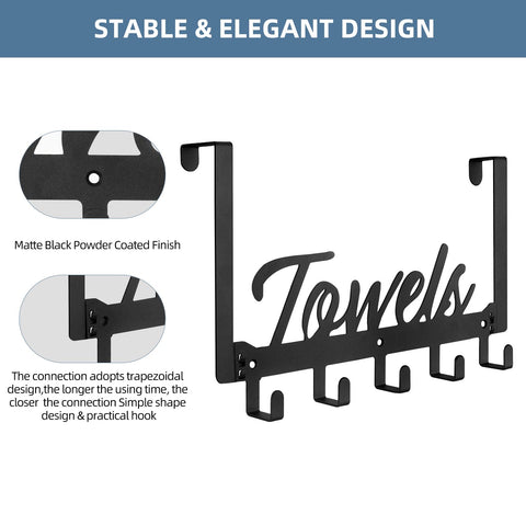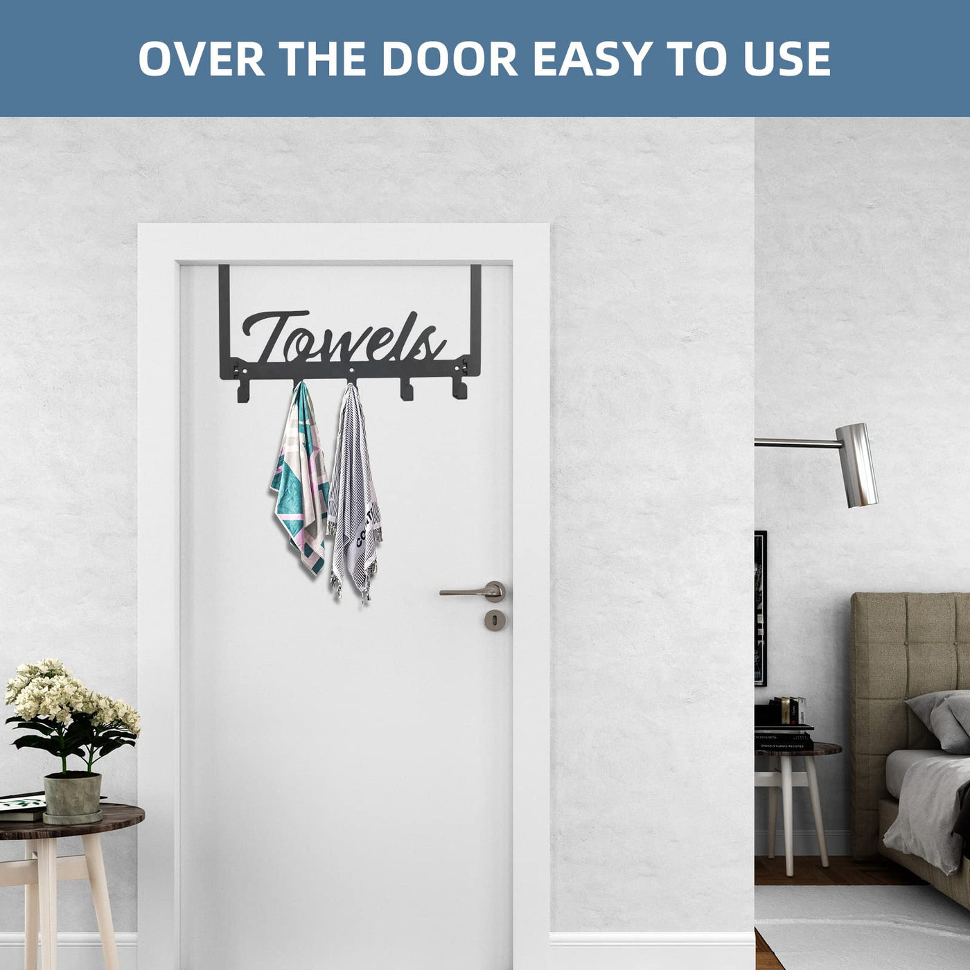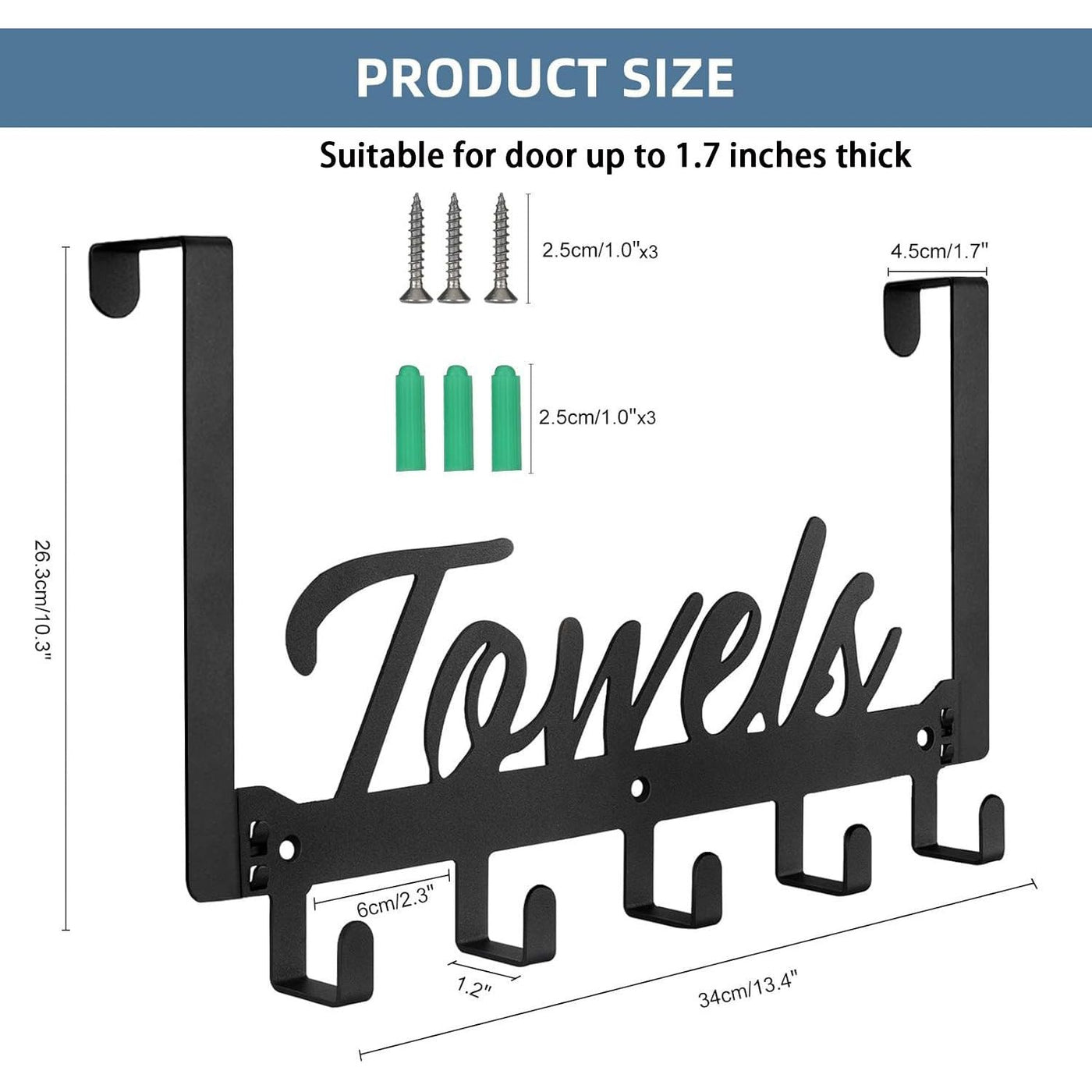 - Saving Space: The towel hanger for bathroom with 5 towel hooks, which can save many space for you. Although you have many things in your room, it just takes up a little room and can be a space saver, very practical. Fit doors between 1.4 and 1.7 inches (3.5-4.5cm) thick