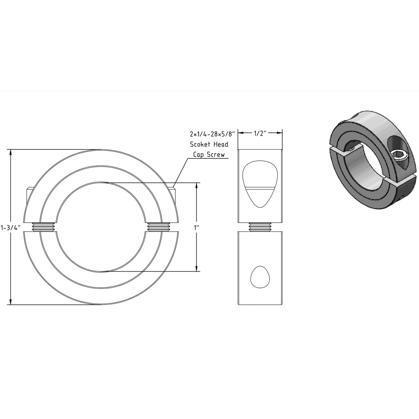 - Bore Diameter: 1", Outside Diameter: 1-3/4", Height: 1/2", 1/4-28'' Set Screw