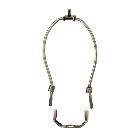 - 6 inch heavy duty lamp harp with a detachable base and antique brass finish