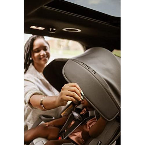 - Integrated Adjustable Canopy for UV Protection: Integrated height and angle adjustable canopy for in-car UV protection. Flip-out side visors provide additional shade protection for either side of the car seat.