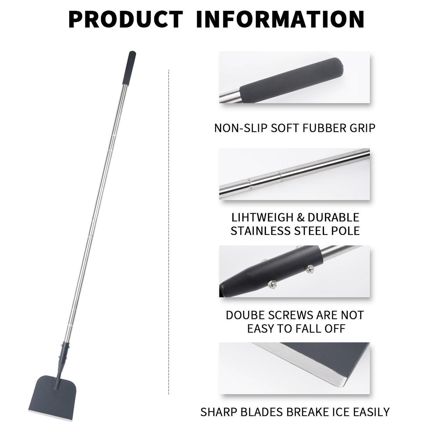 - Adjustable Design: The Ice chopper handle of the weed remover tool adopts a three-speed adjustable design, allowing you to adjust the length of the tool according to your height or usage needs. It is back-friendly and will not feel tired even after long-term use