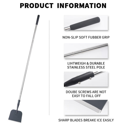 - Practical Size: Our floor scraper long handle heavy duty are carefully designed and incorporate ergonomic principles, easy to use. The ice scraper handle is 59 inches long, and the wider shovel part of 7 in makes cleaning more efficient
