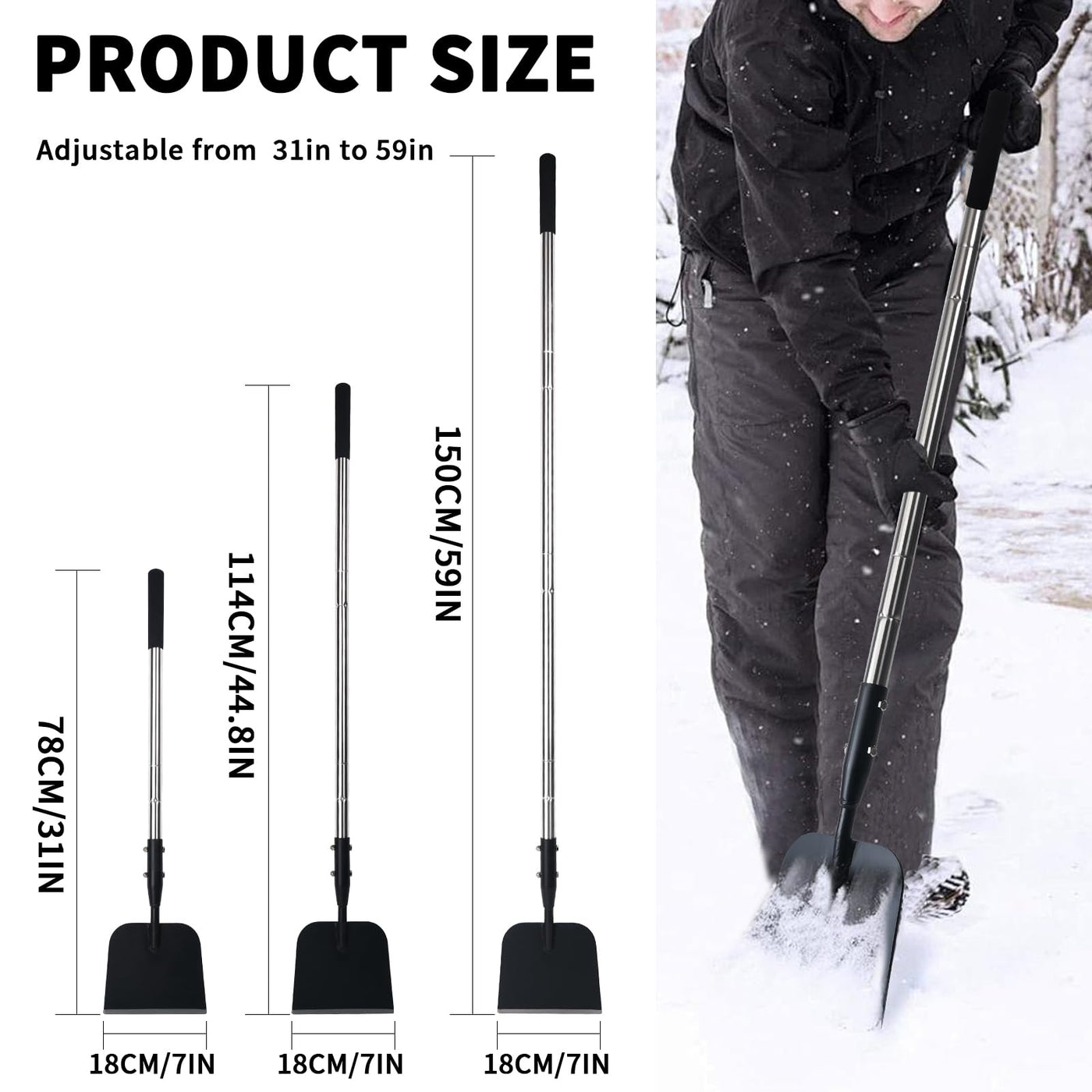 - Reliable Durable: The shovel part of this snow shovel is made of premium quality carbon steel with sharp edges. Stainless steel handle ensures durability and reliability, not easy to rust and deform, and can withstand the test of use in harsh environments