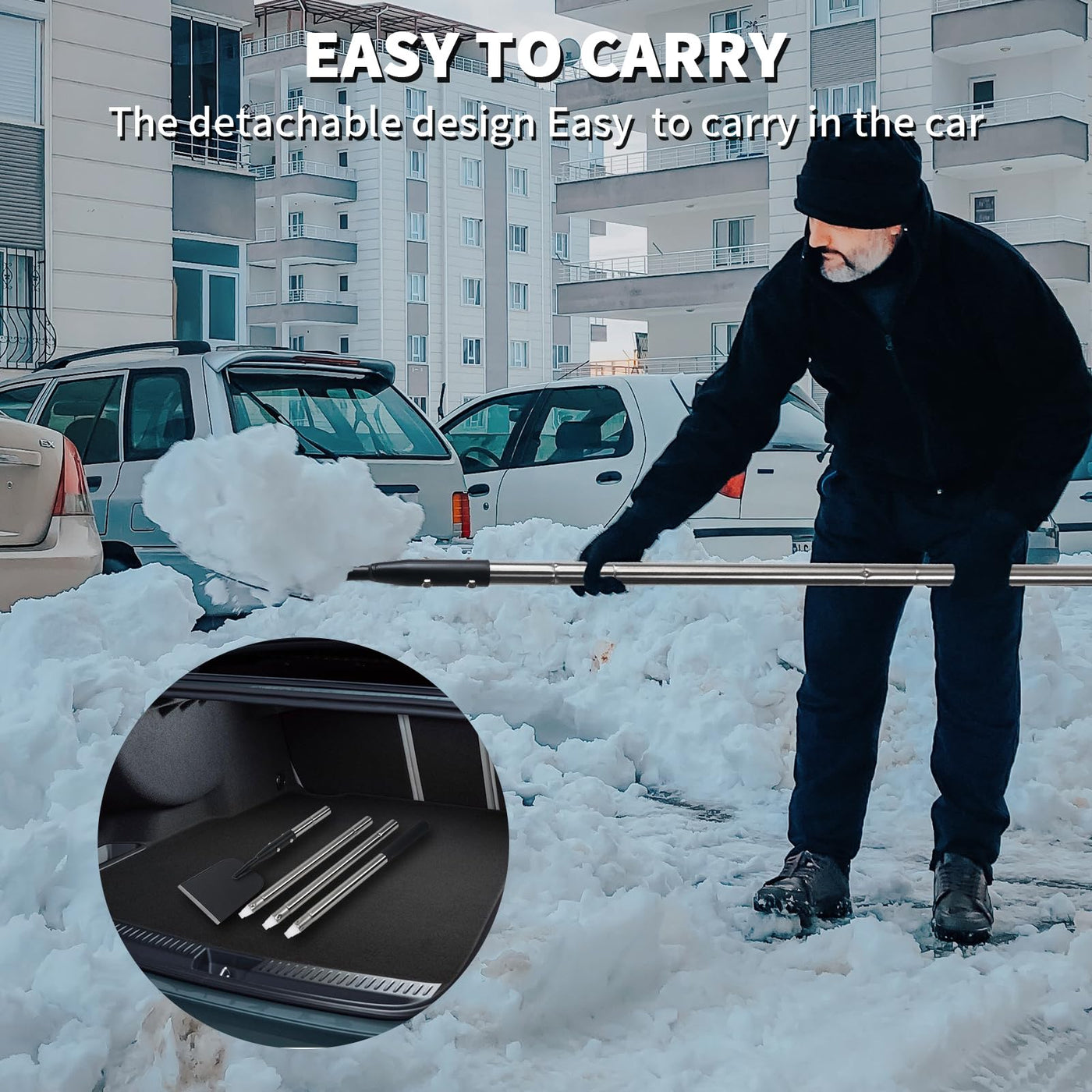 - Easy to Carry: Multifunctional flat cleaning shovel is light, only 2.6 lb, very suitable for carry-on use, and the detachable design is easy to transport. It can be conveniently stored in the trunk of the car without taking up too much valuable space