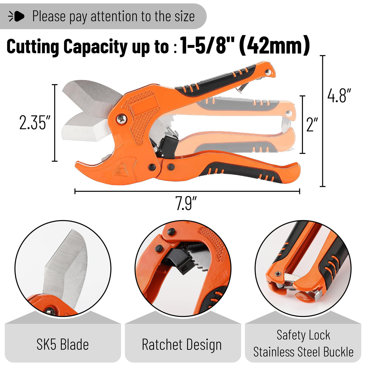 Bates- PVC Pipe Cutter, Cuts up to 1-1/4", Ratcheting PVC Pipe Cutter Tool, Pipe Cutters PVC, PVC Pipe Shears, PVC Cutter, Plastic Pipe Cutter, PEX Pipe Cutter, PVC Cutter Tool, PVC Ratchet Cutter Sale