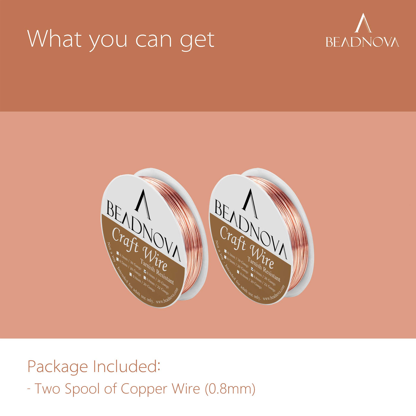 - PURE COPPER: BEADNOVA round bare copper wire is made of pure copper, the color is beautiful with a shiny sheen. Each spool of bare copper wire measures 20 gauge or 0.8mm.