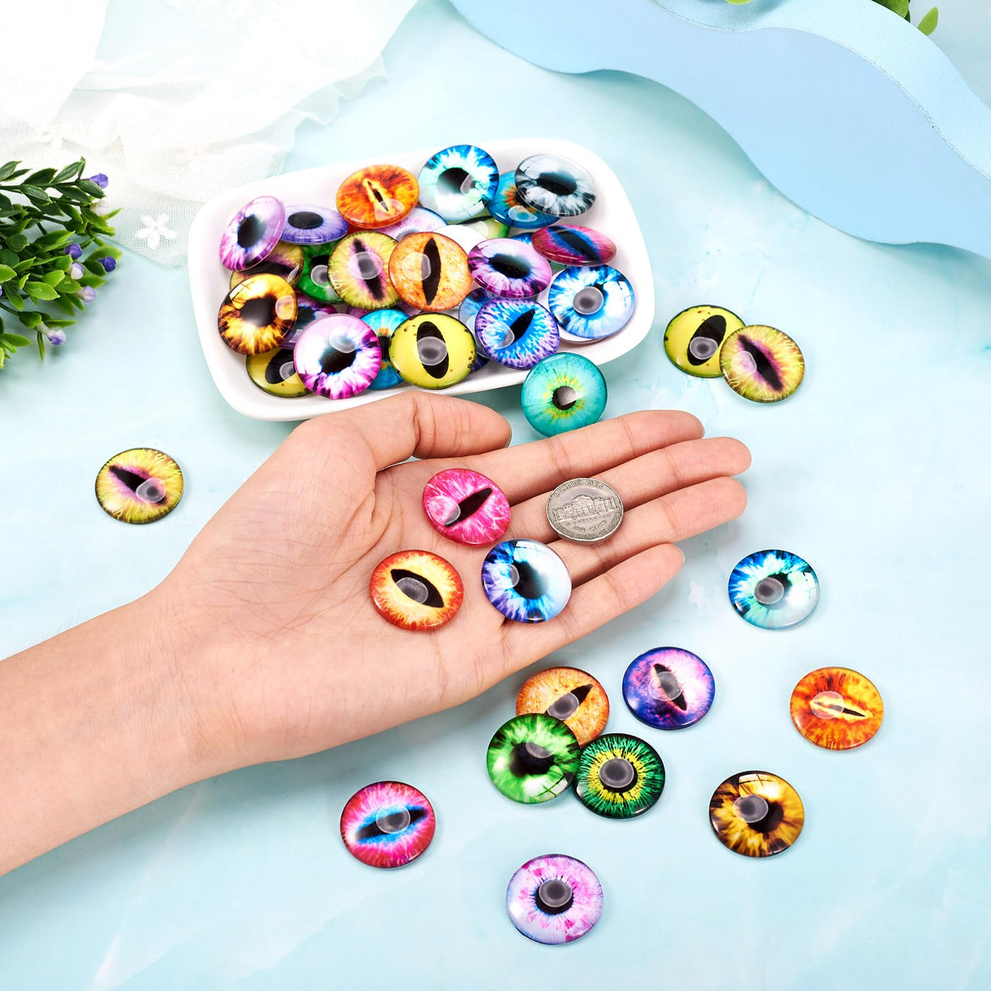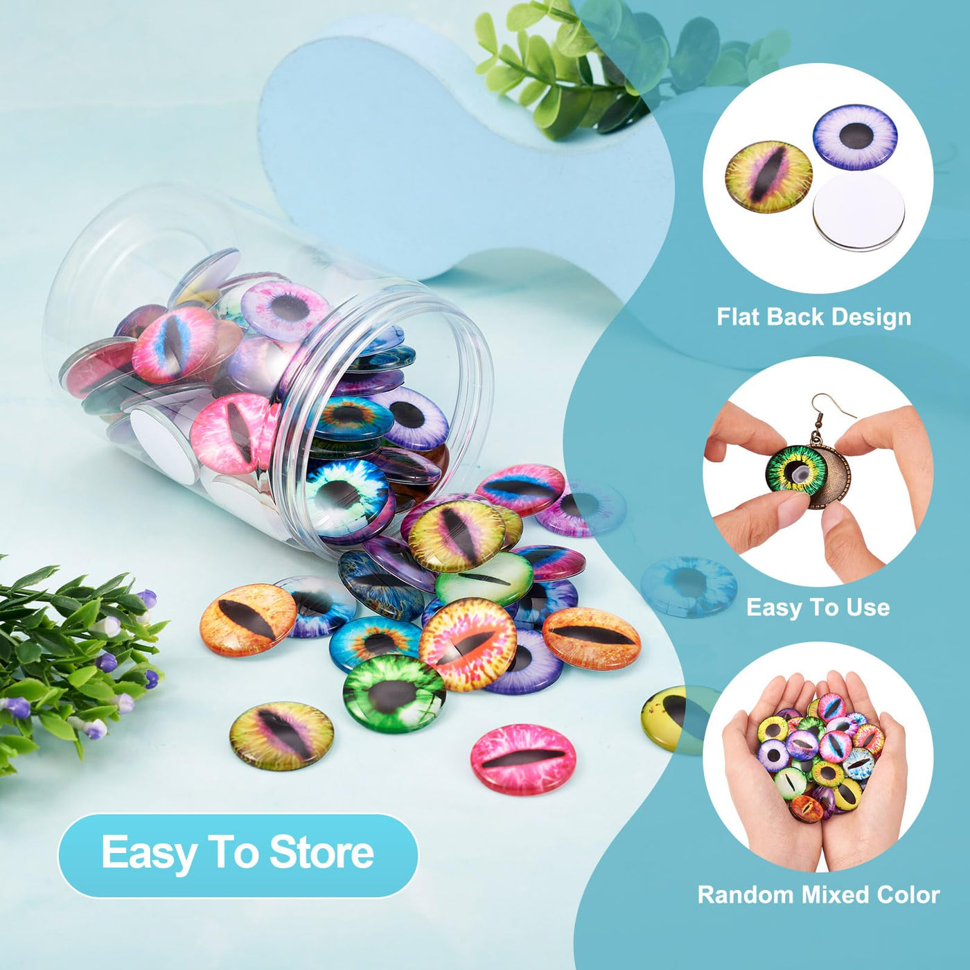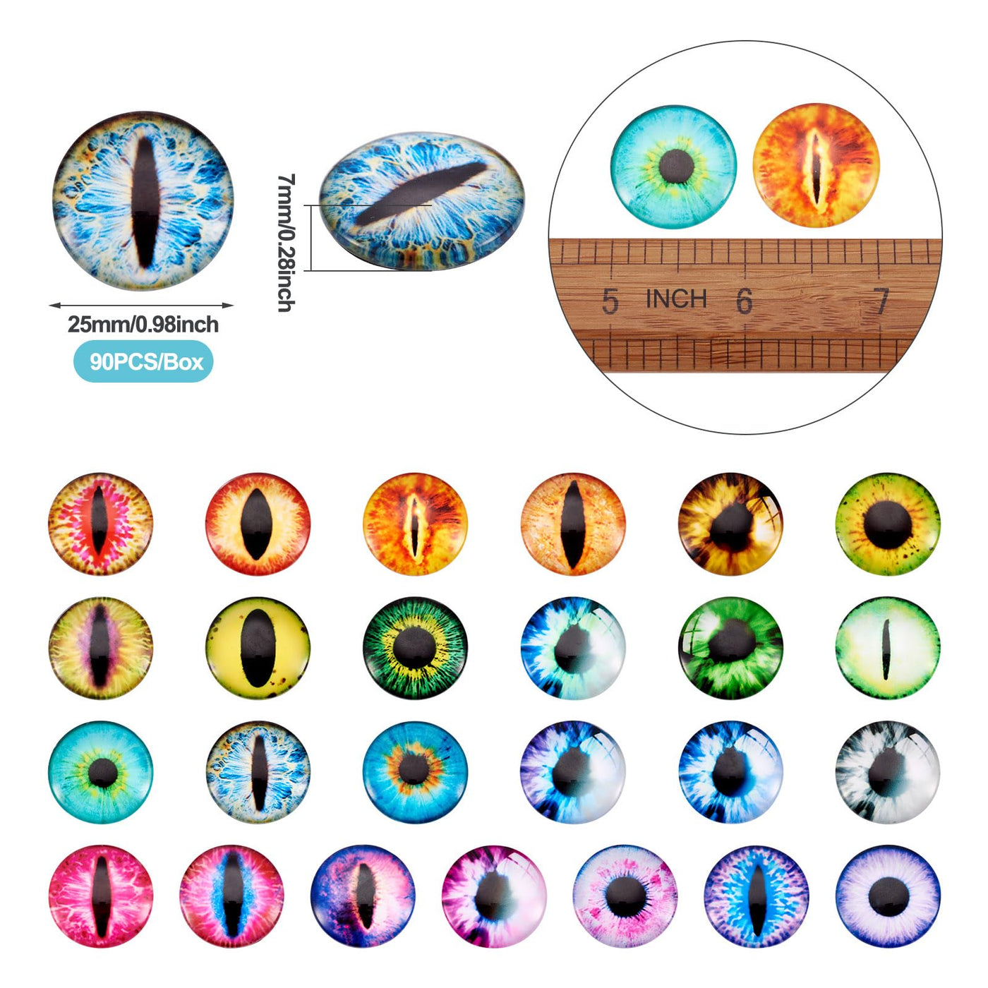 Beadthoven 90pcs 25mm Mixed Style Round Glass Dragon Eye Gem Cover Cabochon for Dome Jewelry Finding Cameo Pendent Doll Making