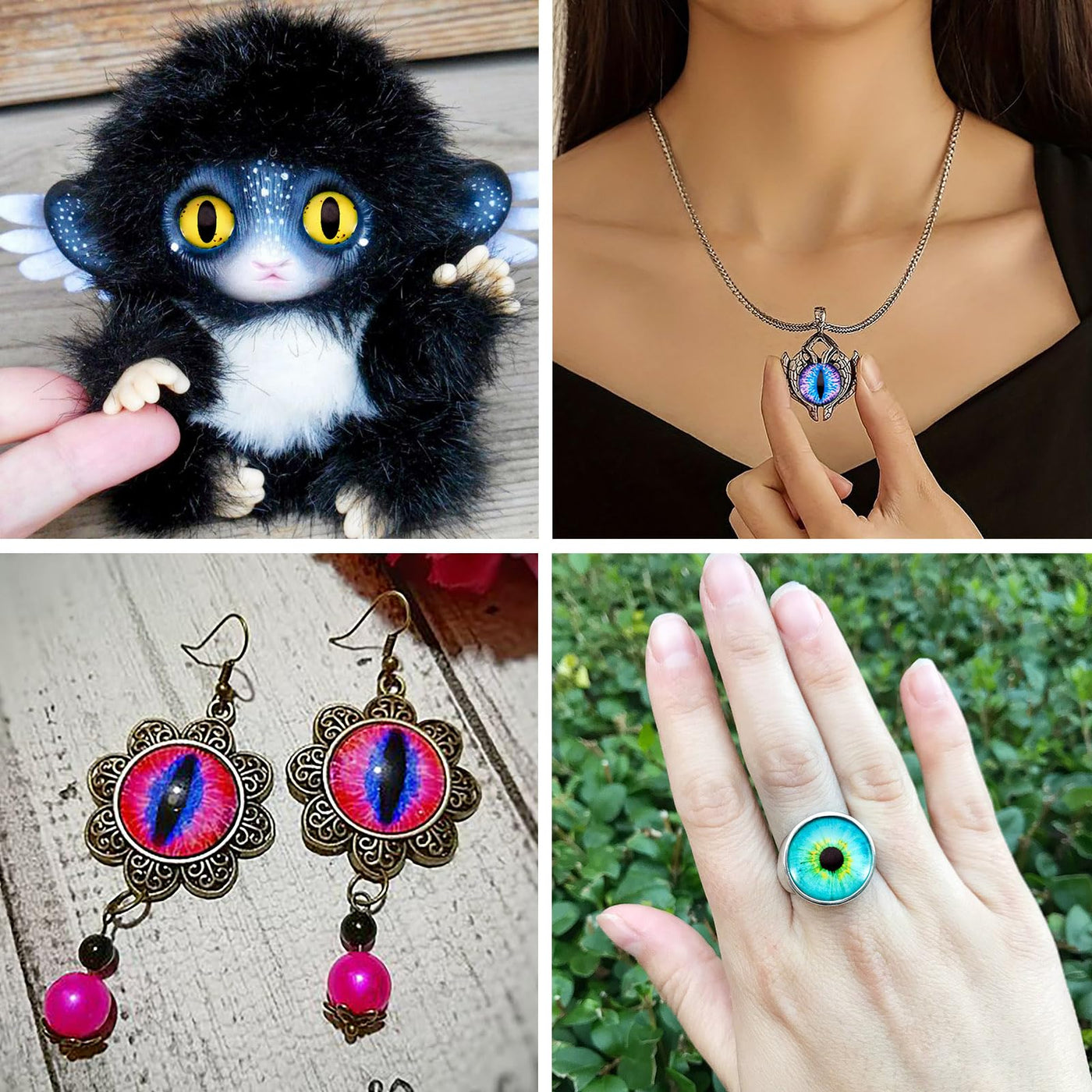 Beadthoven 90pcs 25mm Mixed Style Round Glass Dragon Eye Gem Cover Cabochon for Dome Jewelry Finding Cameo Pendent Doll Making Sale