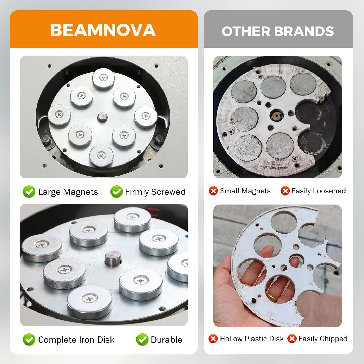 - Powerful Magnetic Performance: Unlike traditional polishing machines, the BEAMNOVA uses imported, high-strength magnets that create multiple swirling magnetic forces. These forces power the polishing pins inside the tumbler for tasks like deburring, chamfering, polishing, and cleaning.
