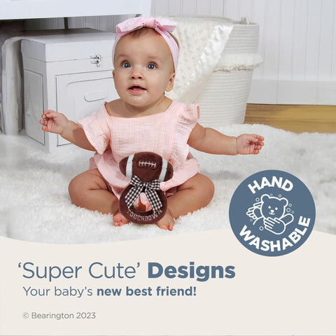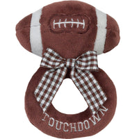 Bearington Baby Touchdown, 5.5 Inch Plush Stuffed Baby Football Soft Ring Rattle - Newborn Toys - Soft Rattle