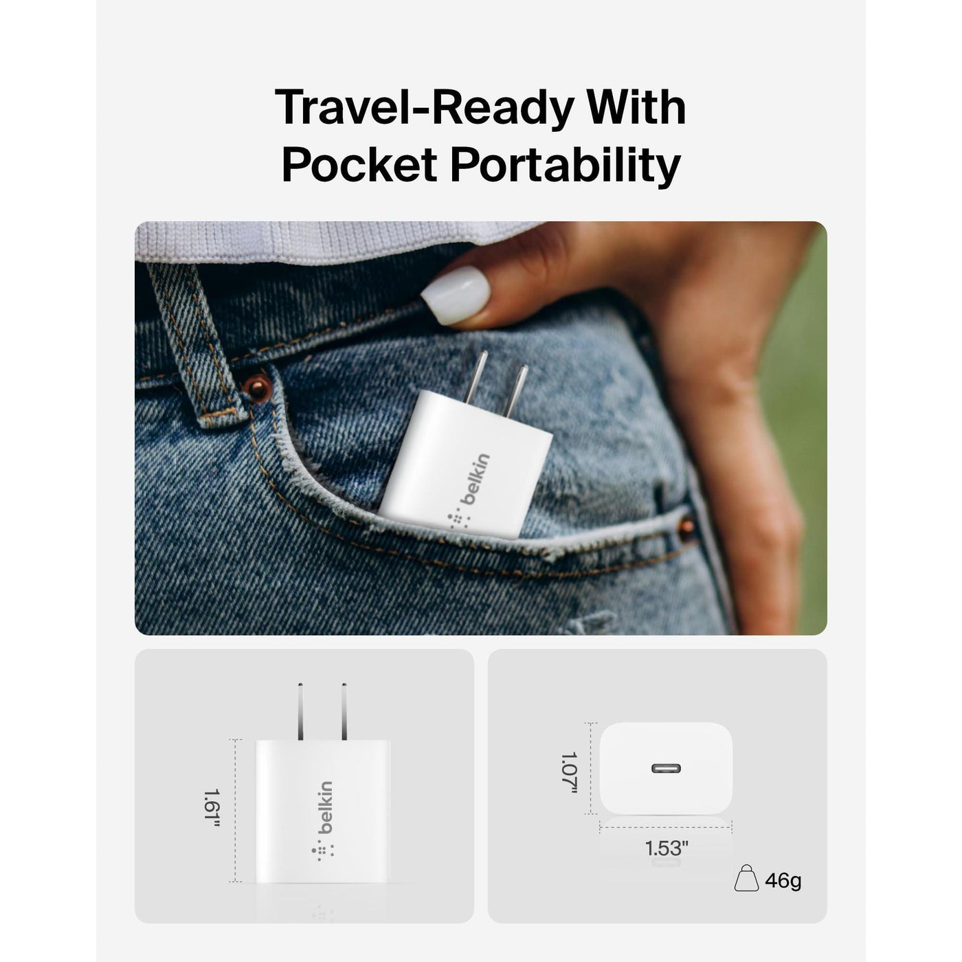 Belkin USB C Charger Block 20W, iPhone Charger Fast Charging - iPhone 16, 15, 14, 13, Pro, Pro Max, Plus, Samsung Galaxy S25, Galaxy S24, Pixel, iPad, AirPods, Nintendo Switch 2 & More - White