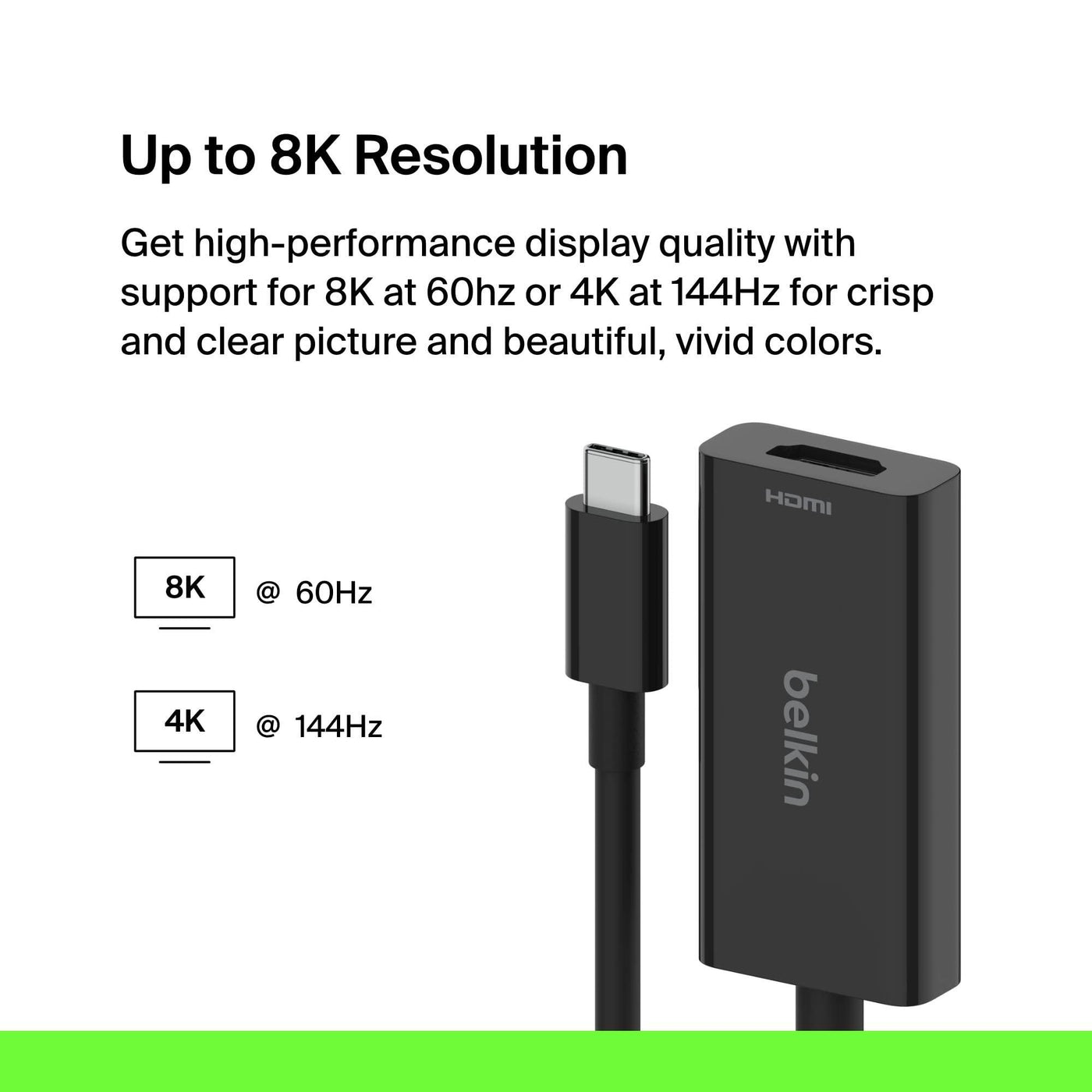 Belkin USB-C to HDMI 2.1 Adapter, Tethered 4.33in Cable w/ 8K @ 60Hz, 4K @ 144Hz, HDR, HBR3, DSC, HDCP 2.2, USB-IF - Works w/Chromebook, Certified for MacBook, iPad Pro, & Other USB-C Devices - Black