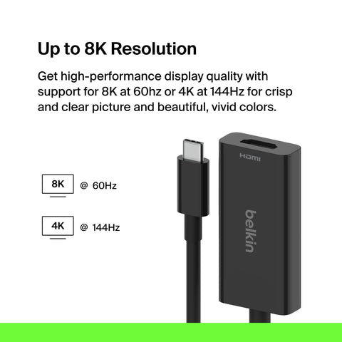 Belkin USB-C to HDMI 2.1 Adapter, Tethered 4.33in Cable w/ 8K @ 60Hz, 4K @ 144Hz, HDR, HBR3, DSC, HDCP 2.2, USB-IF - Works w/Chromebook, Certified for MacBook, iPad Pro, & Other USB-C Devices - Black Sale