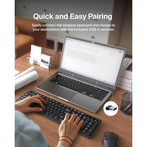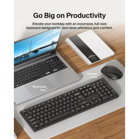 Belkin Wireless Keyboard and Mouse with USB-A Receiver - Keyboard Set w/Wireless Mouse, Ergonomic Design for Home, Office, Desk, Compatible with Laptop, PC, Windows - Batteries Included - Black