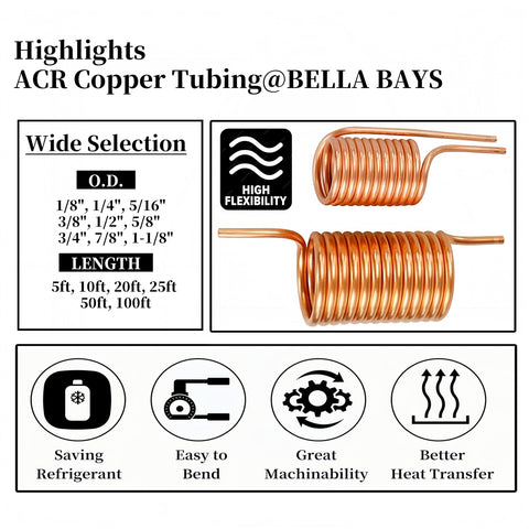 - 【Superior Work Performance】Made of made UNS C12200 grade copper, Refrigeration copper tubing conforms to the ASTM-B280 specification. It is easy to work with, exhibits excellent thermal conductivity, corrosion resistance, and durability. It can be applied in various traditional and innovative scenarios to maximize performance and sustainability.