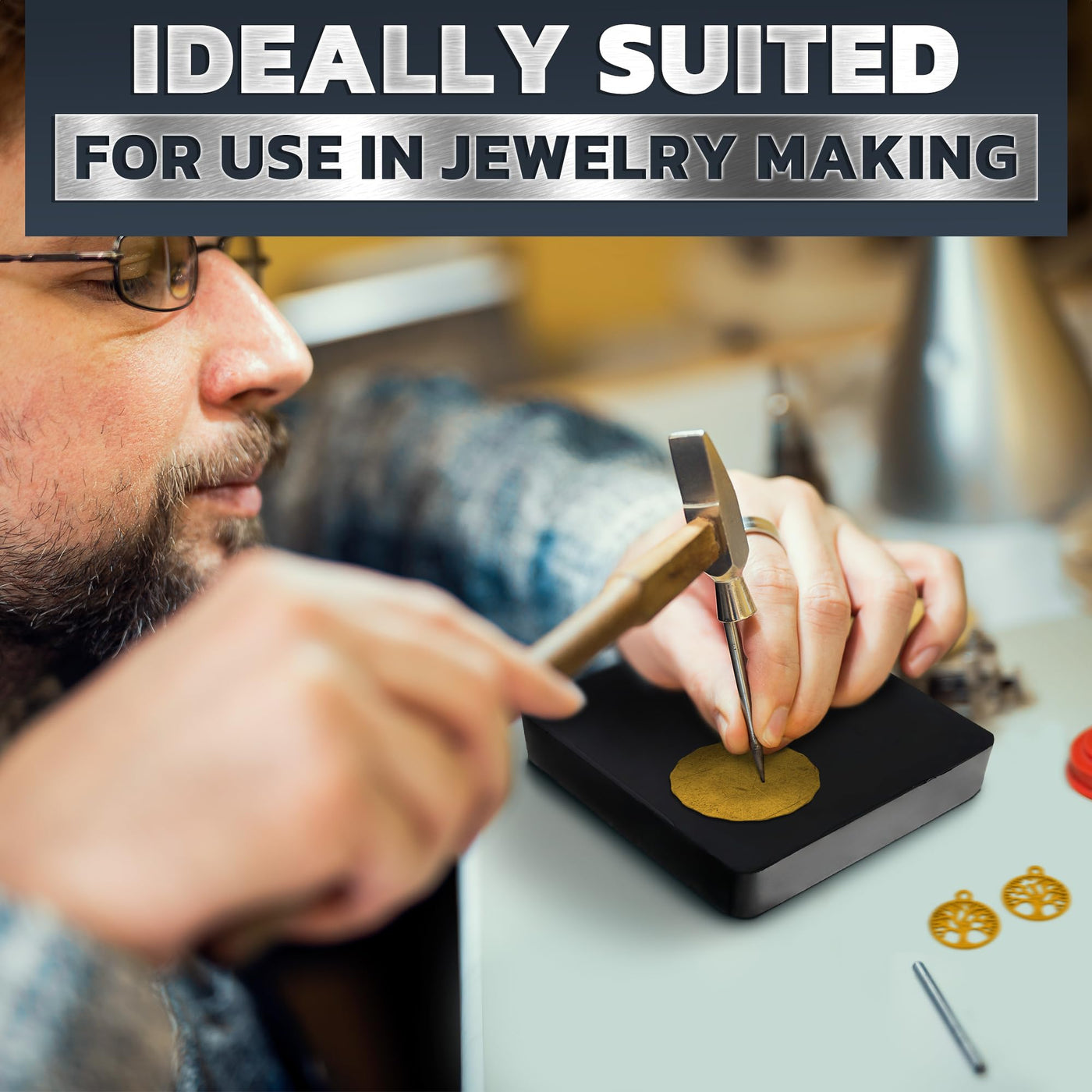 - Multi-Use Jewelry Hammering Tools: Fit perfectly on any jewelry bench. Use the hammering block for jewelry making to flatten, stamp, or shape metal, supporting both detailed and larger projects with ease
