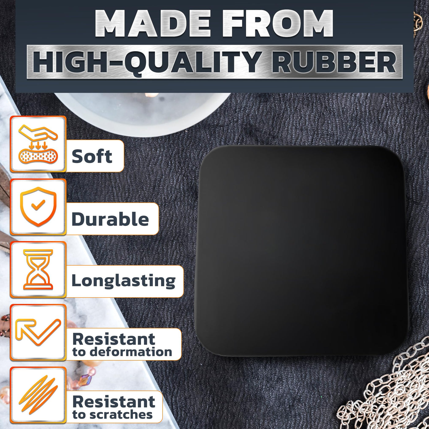 - Durable Rubber: This rubber jewelry block is crafted for lasting use on any jewelers bench. Its resilient surface absorbs impact and reduces noise, supporting precise jewelry crafting and tool longevity