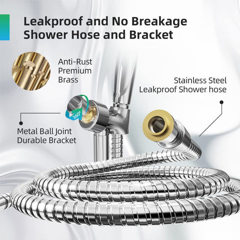 - LEAKPROOF & NO BREAKAGE: Our Double Buckle design hose keeps this hose away from breakage and leakage. This hose provide maximum flexibility, and the backet is crackproof and leakproof can hold up the shower head even under high pressure water flow