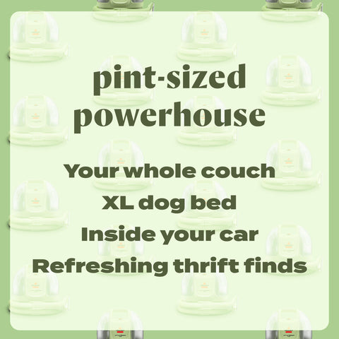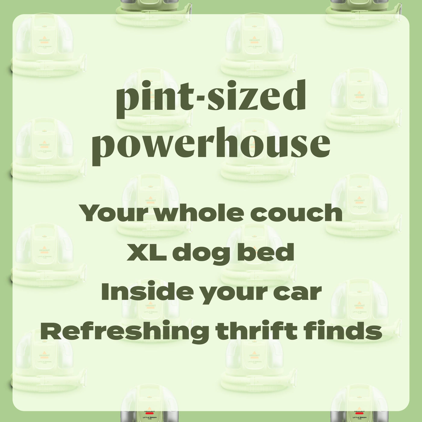 Details: Save on space without sacrificing on cleaning ability. Use BISSELL® Little Green® Mini portable upholstery and carpet cleaner to spray, scrub and lift away tough messes, like dirt and stains, from all types of surfaces. Easily access hard-to-clean spaces like staircases or car interiors with Little Green® Mini portable deep cleaner’s lightweight and compact design. Every purchase makes it possible for BISSELL to continue our support of BISSELL Pet Foundation® and its mission of saving pets in need. Since 2011, BISSELL has donated over $26 million in support of BISSELL Pet Foundation®. When you purchase a BISSELL® product, you help save pets, too. Our products are engineered to clean even the toughest messes so pets can stay at home and out of shelters.