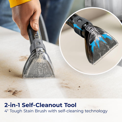 - 4" SELF-CLEANOUT TOOL. Quickly tackle stains and clean the tool with just one touch.