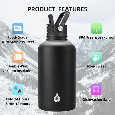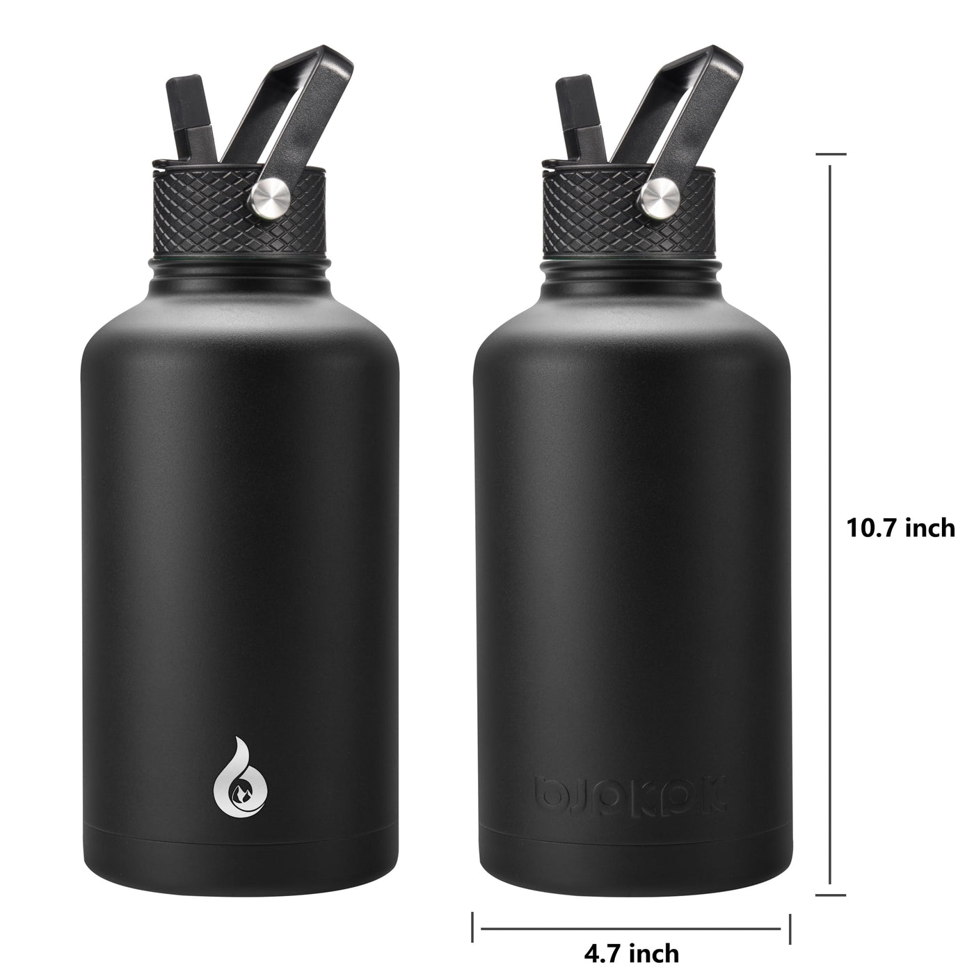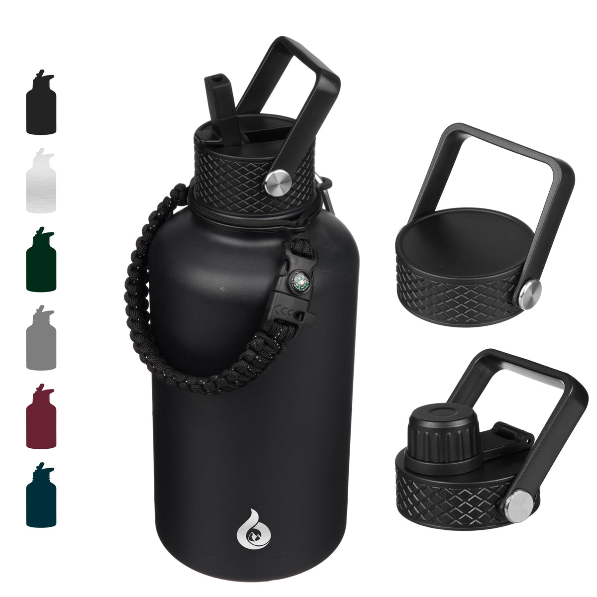 Details: BJPKPK Half Gallon Insulated Water Bottles with Straw Lid, 64oz Large Water Jug, Stainless Steel Bottles with 3 Lids and Paracord Handle, Thermo for Hot & Cold Liquid, Black
