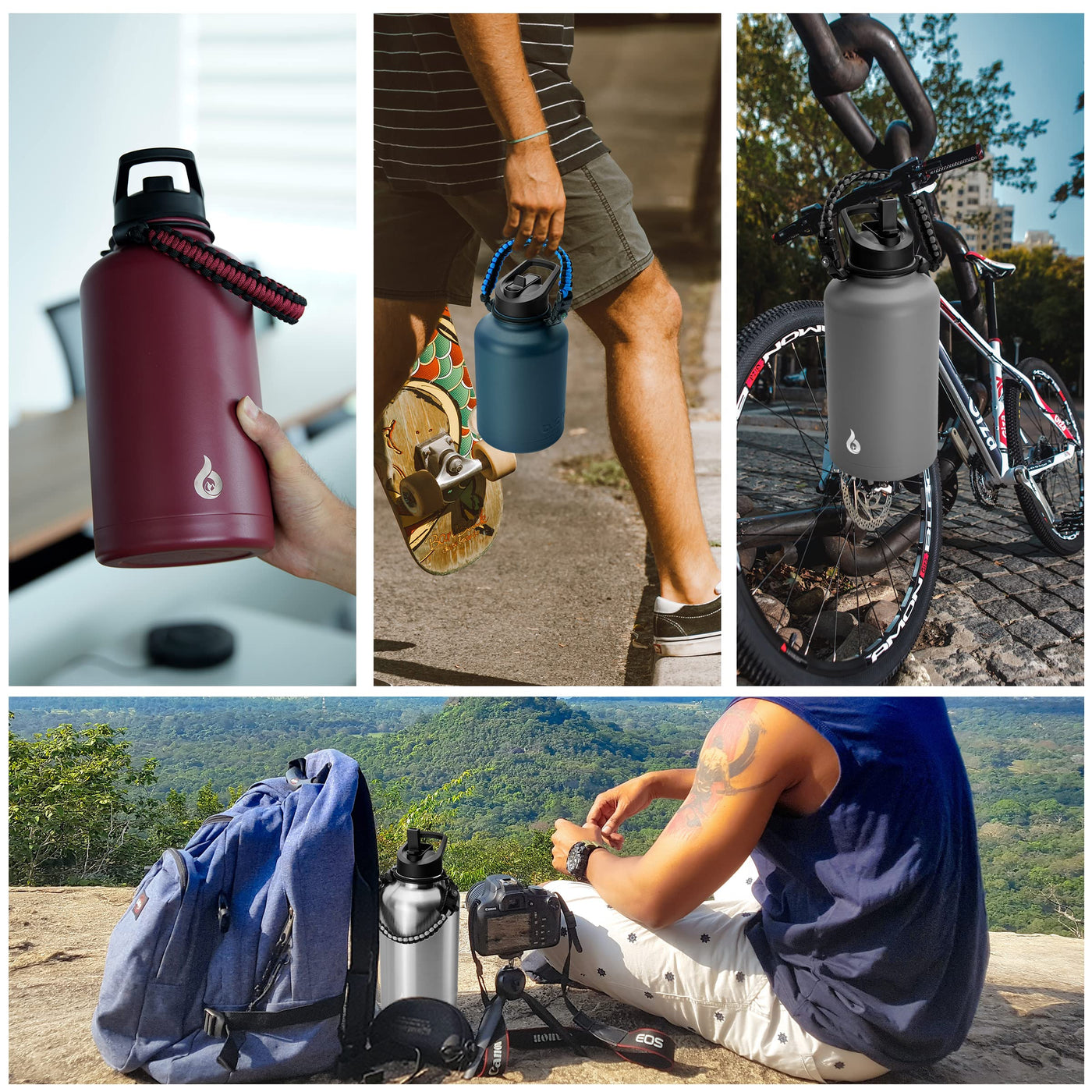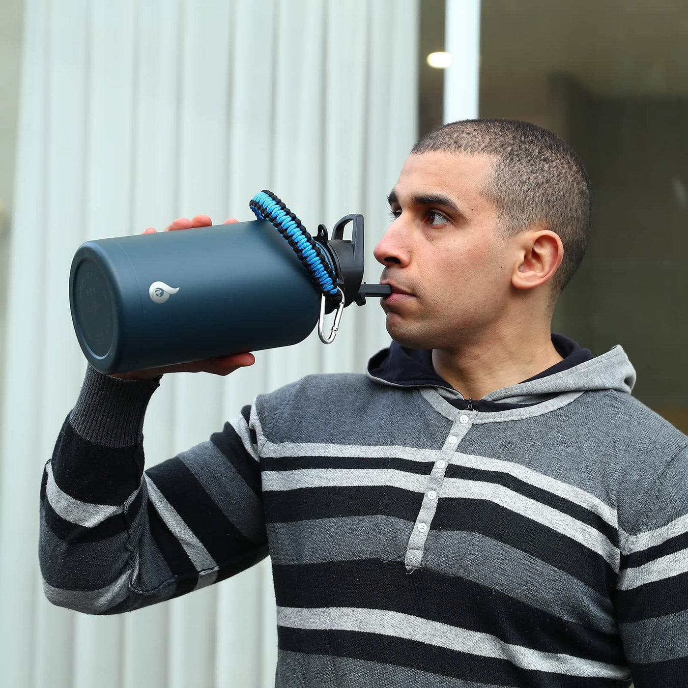 - FULLY EQUIPPED: We have equipped a flip straw lid, an easy twist spout lid, and a portable handle lid for 64 oz insulated sports water bottle to meet your needs in different scenarios. With a paracord handle, you can carry it in a comfortable and fashionable way. 2 straws,1 straw brush and dishwasher safe design help you clean it easily