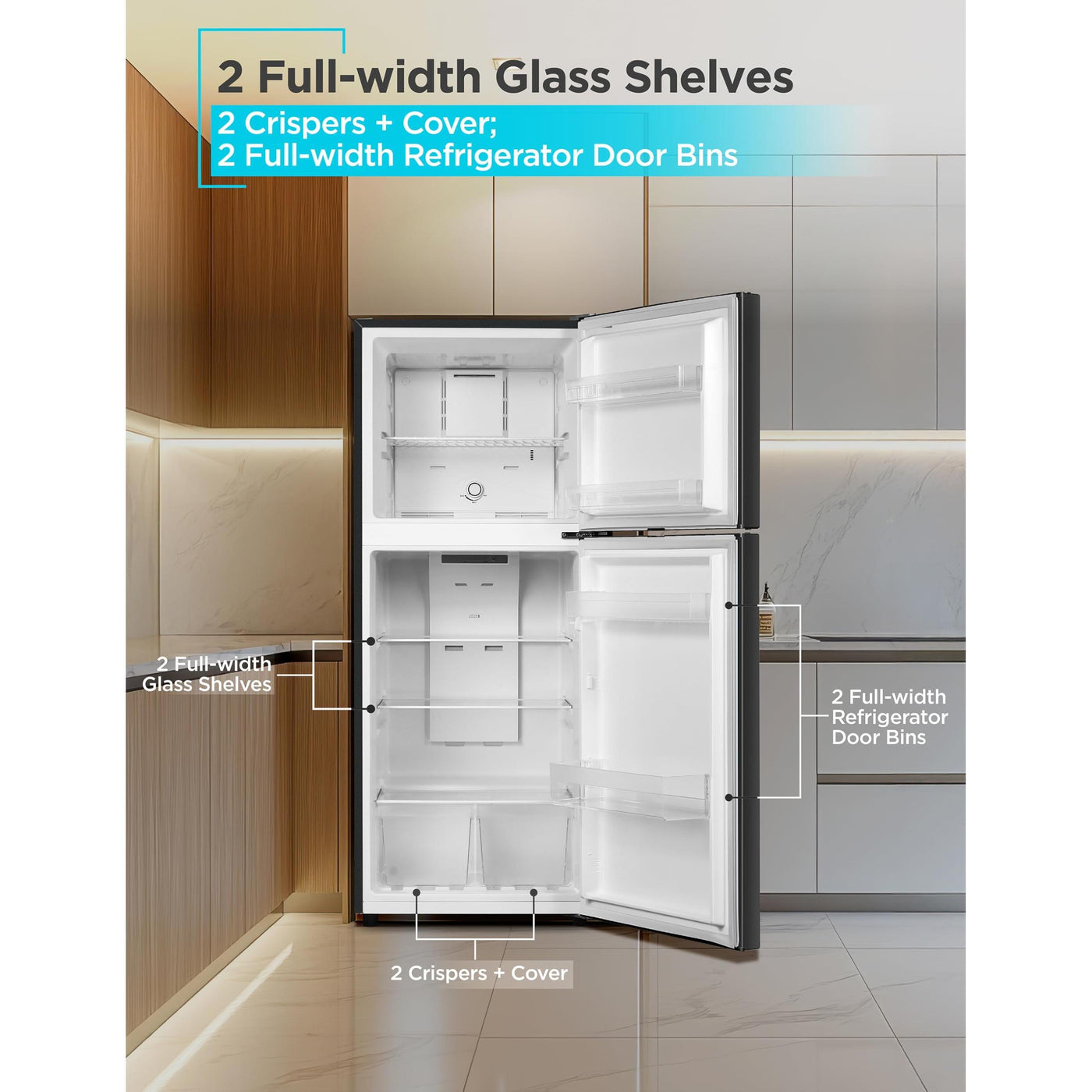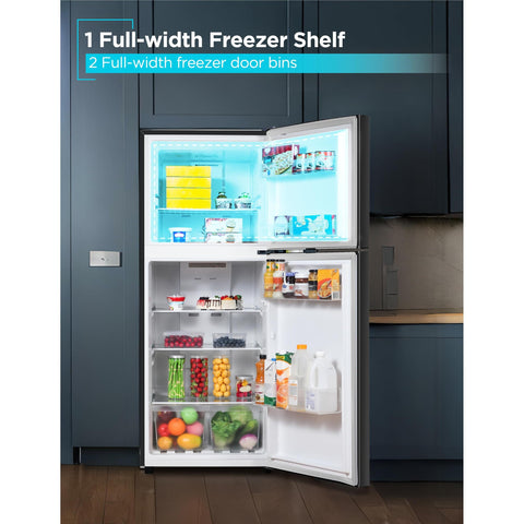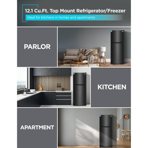 - Spacious 12.1 Cu. Ft. Capacity: This full size refrigerator with freezer provides ample space for your fresh and frozen foods. Top freezer refrigerator is ideal for kitchens in homes and apartments