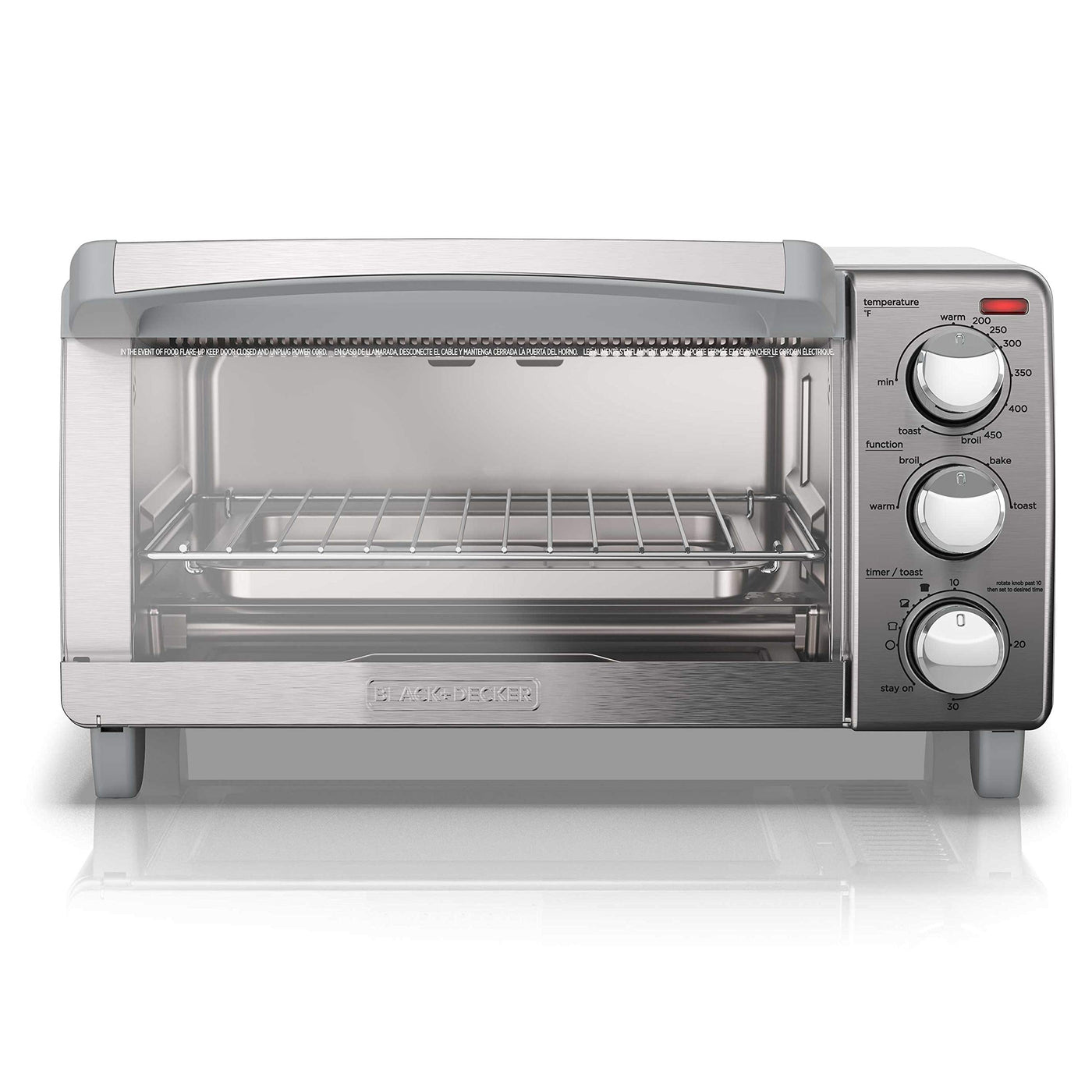 Details: Whether you’re making your morning toast, heating up a frozen snack or looking forward to a 9” pizza loaded with your favourite toppings, the Black+Decker™ Natural Convection 4-Slice Toaster Oven has your favorite foods covered. Natural Convection provides delicious cooking results, ensuring food is evenly cooked and toast is evenly toasted from crust to crust. Four simple cooking functions: bake, broil, toast and keep warm make mealtimes easy. A 30-minute timer reminds you when your food is ready while the Stay On function allows for longer cooking tasks. A handy rack helps the air to circulate all around food, or use the baking pan for meat, fish and more. A drip tray cleanly collects any excess fat, and a removable crumb tray keeps the inside of the oven mess-free. There’s no need to let cold air in as you check on your meal’s progress – just glance through the viewing window to see how it’s doing. Easy to use, easy to clean and with simple pre-set functions, the Black+Decker™ Natural Convection 4-Slice Toaster Oven is a convenient way to cook the food you love!