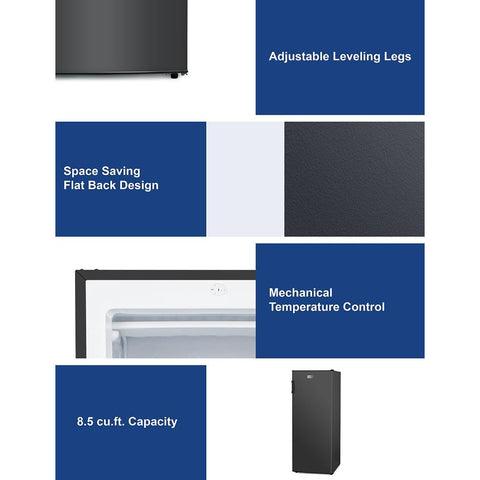 - Spacious 8.5 Cu. Ft. Capacity: This garage freezer offers ample space to store all your frozen foods, including meat and bulk items. An ideal freezer upright for families requiring extra storage