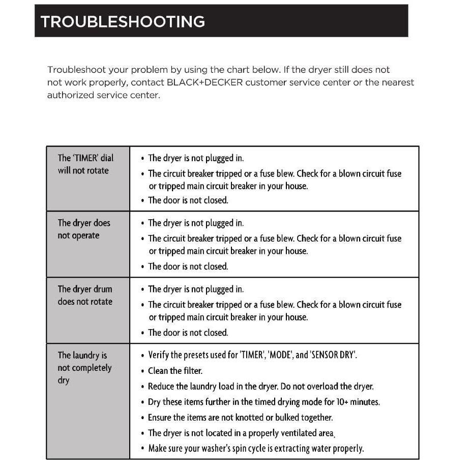 Details: Clean, dry clothes are no longer a luxury for larger homes and buildings. This B+D compact dryer (23.6” x 21.5” x 27.5”) is ideal for smaller spaces and apartments conducive to vented drying. This mini dryer (49.5 lbs.) has an exhaust connector with the capability of accommodating a 4” dryer vent hose, and also includes reusable lint and exhaust filters. Enjoy drying up to 13.2 lbs. of laundry per load with an inside stainless steel capacity of 3.5 cu. ft. This outstanding 120V clothes dryer runs on 1500W and connects to standard outlets with its 3-prong plug. Choose your drying mode, whether Air Dry, Cool, Warm & Hot. Sensor Dry enables dryer to measure moisture level and dry accordingly. Drying times vary between 30 – 200 minutes. The drying times will be extended over traditional full-size dryers due to the fact that this unit uses 120V versus a 220V full size machine. Fill halfway for fluffy, freshy dried clothing. Safety is our top priority with this portable dryer with overheat protection. Included are adjustable leveling legs, front loading transparent lid and compatibility with a variety of other B+D washers. ISTA-6A packaging ensures quality delivery.