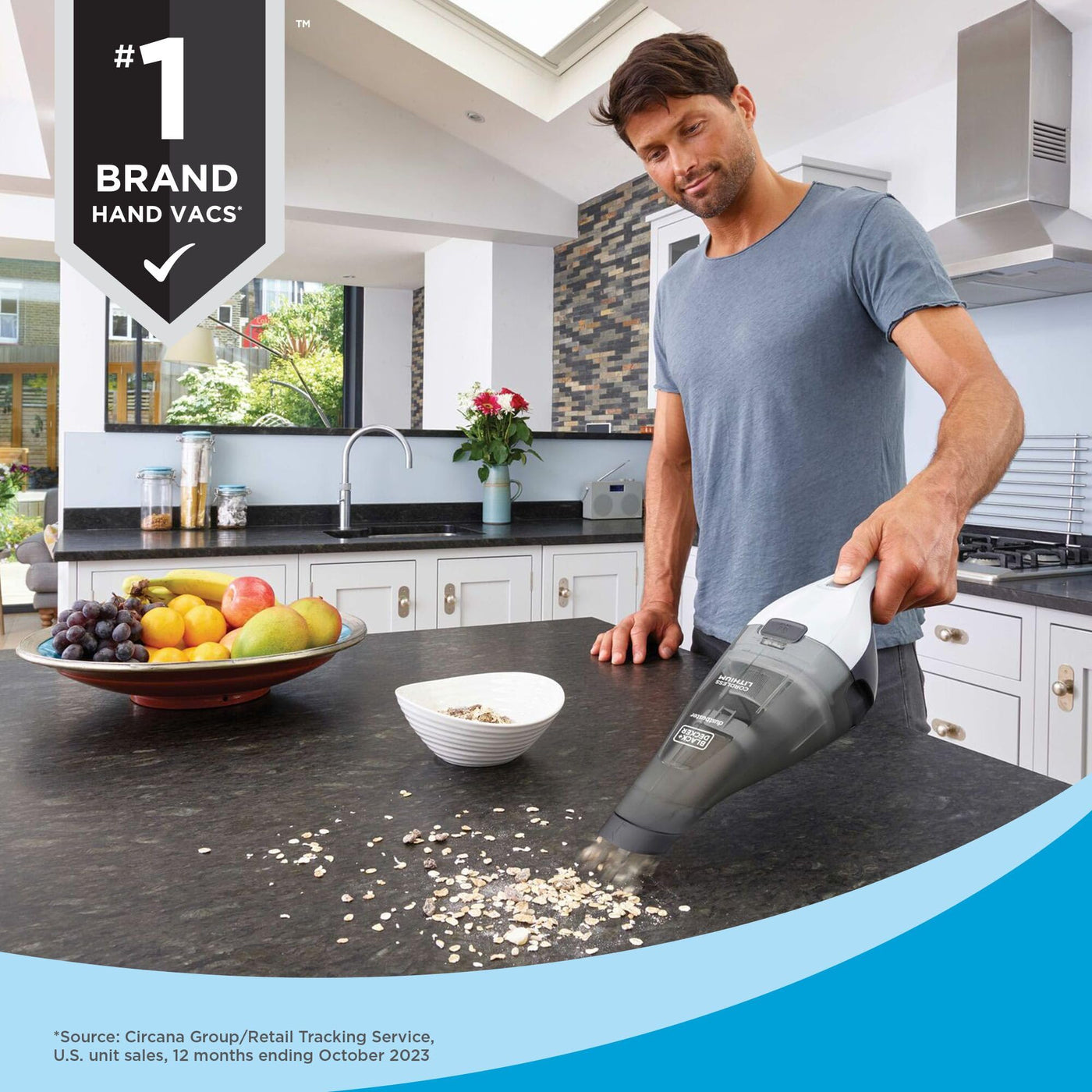 Details: For quick and easy cleaning, look to the BLACK+DECKER dustbuster QuickClean Cordless Handheld Vacuum. This hand vacuum is lightweight, portable, and ready to pick up small and large debris like dust, flour, coffee, cereal, and more thanks to its powerful suction. The built-in crevice tool gives you instant access to cramped spaces and tight corners, while the translucent dirt bowl lets you see the debris level, so you’ll always know when to empty it. Plus, this hand vacuum includes a convenient wall mount that doubles as a charger, so it’ll be ready for next time. * Source: Circana Group/Retail Tracking Service, U.S. unit sales, 12 months ending October 2023.