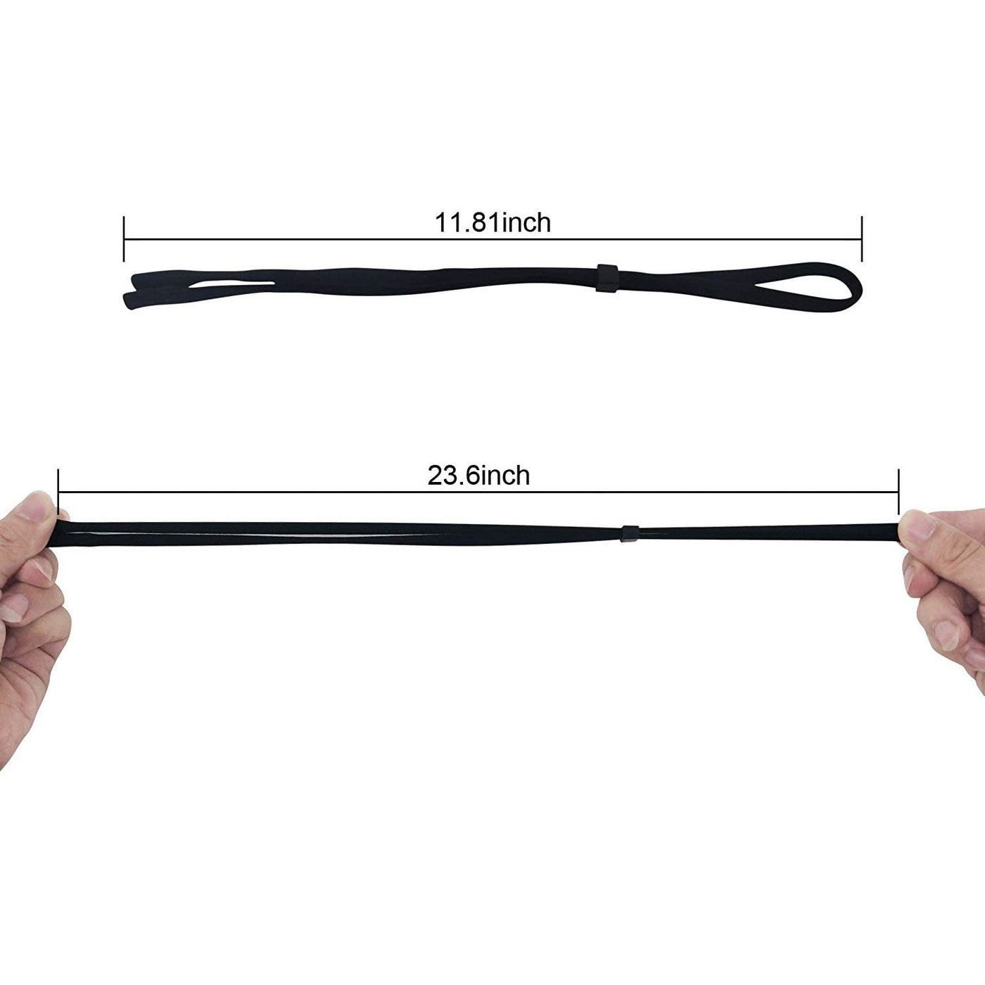 - Keep Glasses in Place, Quick & Easy to Put on And Remove - Each sunglasses neck strap is 11.8 inches long, with a black square double hole slider fasteners that can be adjusted as tightly or loosely as you want. The tubes on the ends tightly grip temples to secure glasses to head when cinched. Hang the lanyards-style sunglasses retainer around your neck when not in use and you’ll never lose your sunglasses again