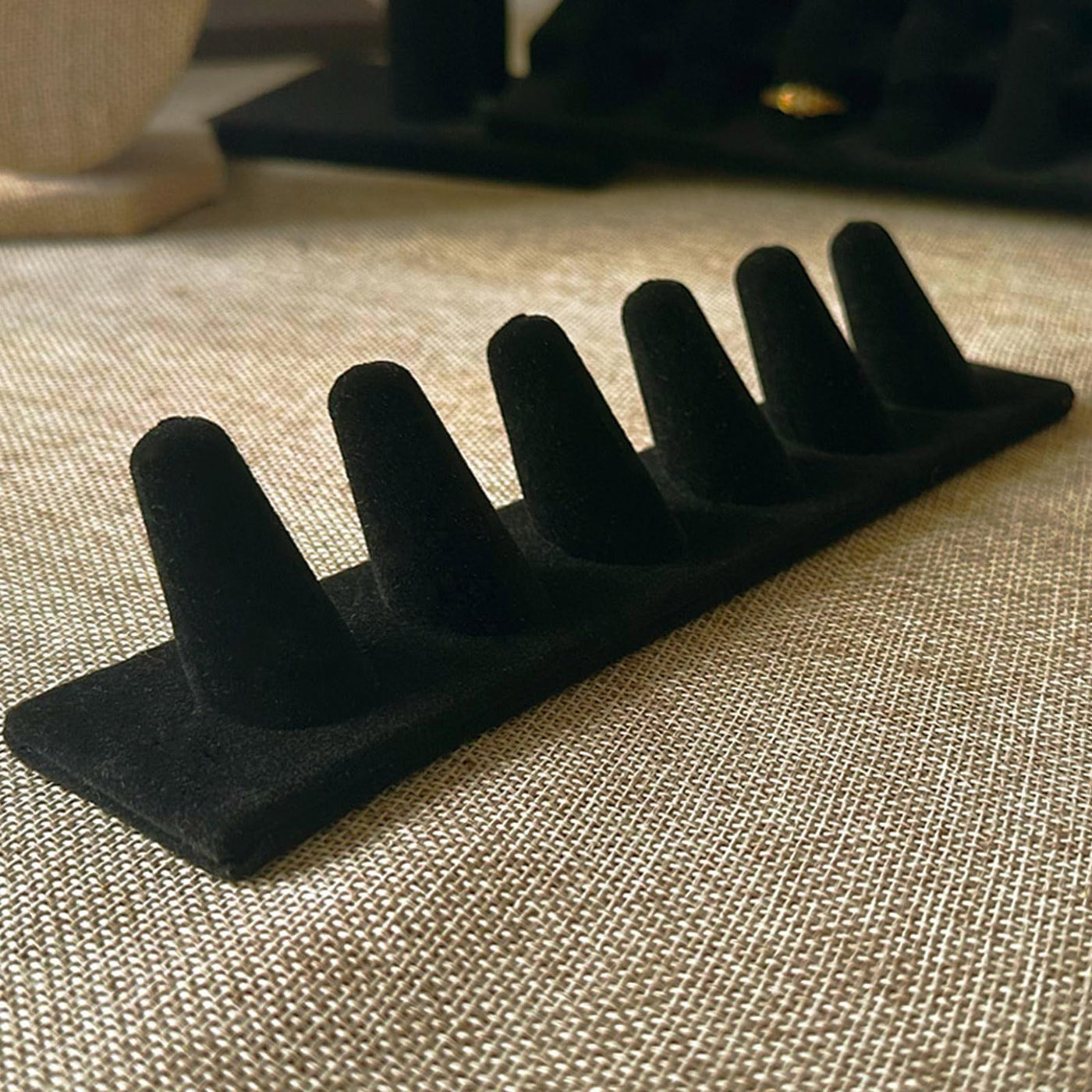 - Luxurious Ring Display: Show off your rings in style with our elegant velvet ring display holder. The soft, rich black velvet ensures your rings shine in the light.