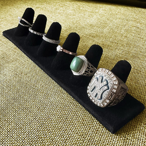 - Versatile and Accommodating Ring Holder: This multi-functional ring holder, sized at 8.5" x 1.6" x 1.6", boasts 6 convenient slots designed to accommodate rings of various sizes. Specially for large rings.Whether you're a jewelry retailer needing an attractive jewelry display for your rings, or an individual seeking a jewelry organizer for ring storage, this jewelry holder offers the perfect solution. Showcase or neatly store up to 6 rings simultaneously with ease.