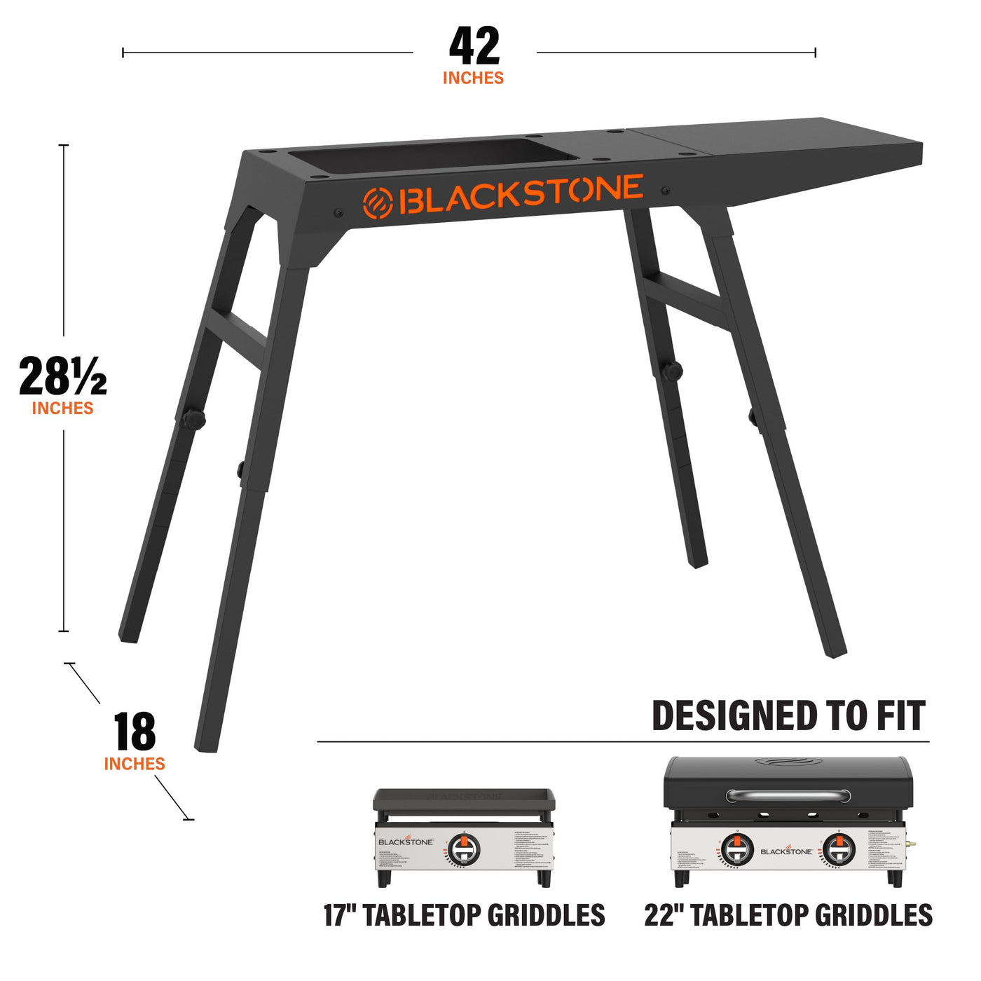 Blackstone 5013 Collapsible 17” and 22” Tabletop Griddle Stand with Adjustable Legs and a Removable Side Shelf, Powder Coated Steel, Black Sale