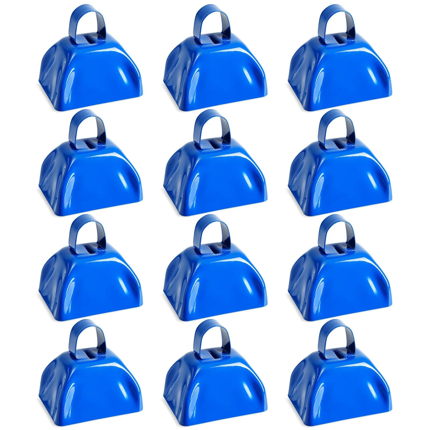 BLUE PANDA 12 Pack 3-inch Cowbells with Handle, Blue Hand Percussion Cow Bells Noise Makers for Sporting Events, Football Games and Celebrations - Cowbell Noise Maker