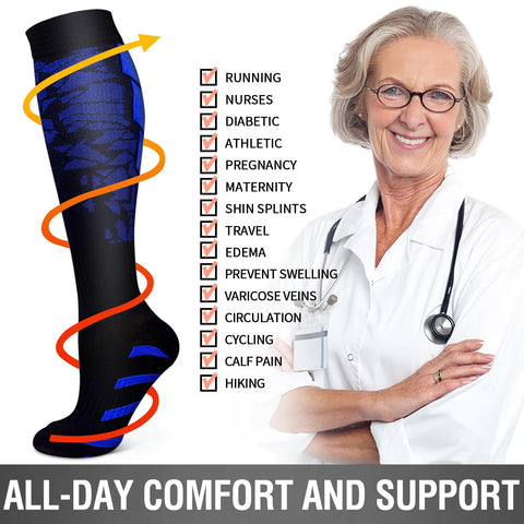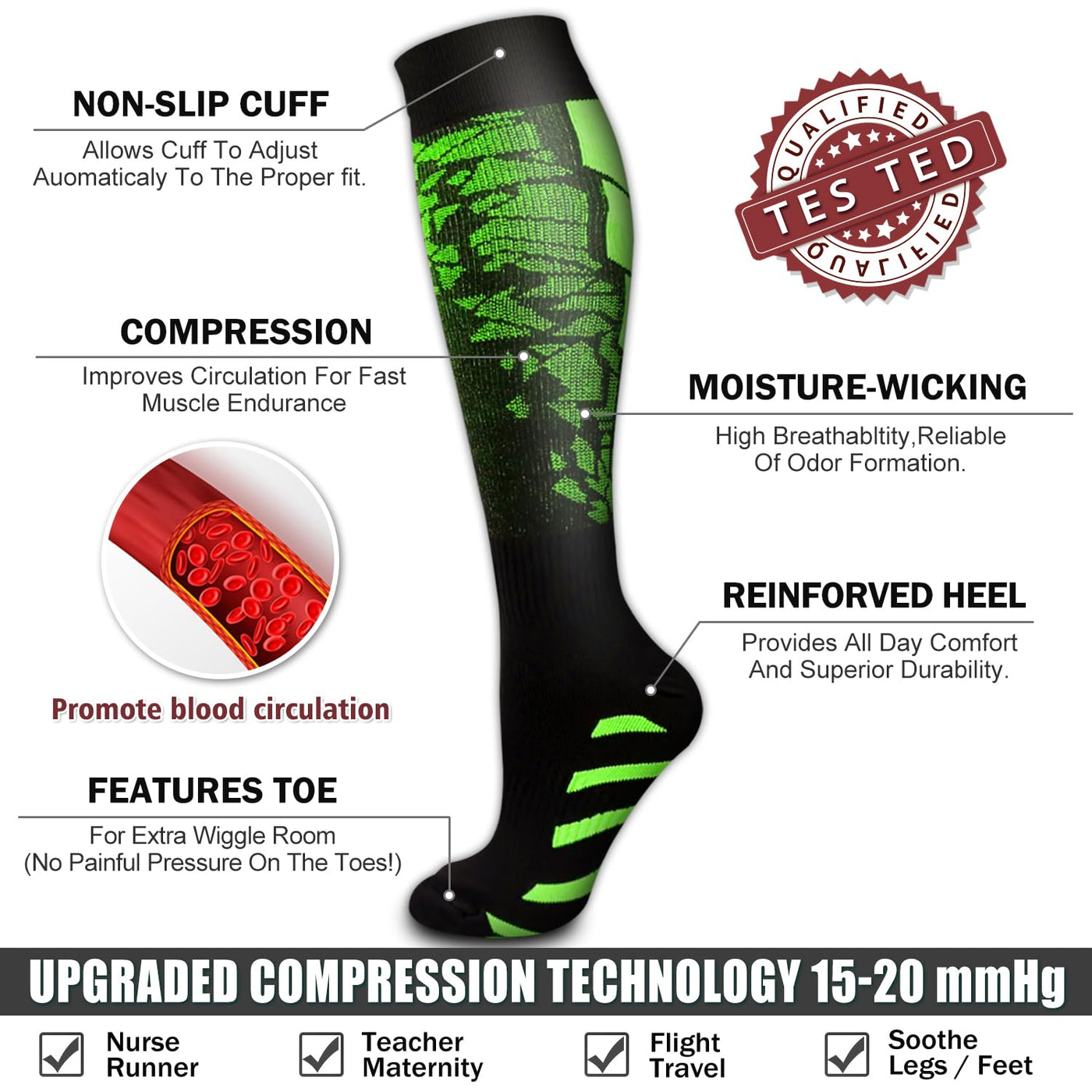 - ALL THIS IN A VALUE 6-PACK- Each pack includes 6 pairs of compression socks at an unbeatable price;Superlative compression hosiery does not have to be expensive-our brand provides quality comfort and support identical to the famous brands that cost two to three times more;You decide on the assortment based on your style,age or sex;Each bundle provide the high quality,performance and durability;Ensure the perfect fit