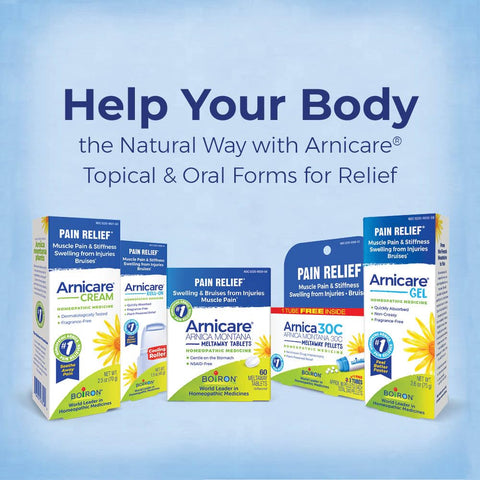 - ARNICA FOR PAIN: This homeopathic medicine helps temporarily relieve muscle pain & stiffness due to minor injuries, overexertion & falls. Also great for pain, swelling, & discoloration from bruises.