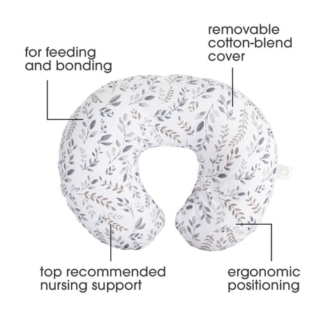 Boppy Original Nursing Pillow, Gray Taupe Leaves, Ergonomic Nursing Essentials for Bottle and Breastfeeding, Firm Fiber Fill, with Removable Pillow Cover, Machine Washable Sale