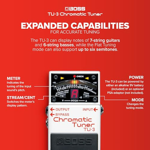 BOSS TU-3 Chromatic Floor Tuner for Guitar and Bass | Industry-Standard Performance | Tank-Tough BOSS Stompbox Body | 21-Segment LED Meter | Accurate to +/- One Cent | Accu-Pitch Sign Function Sale