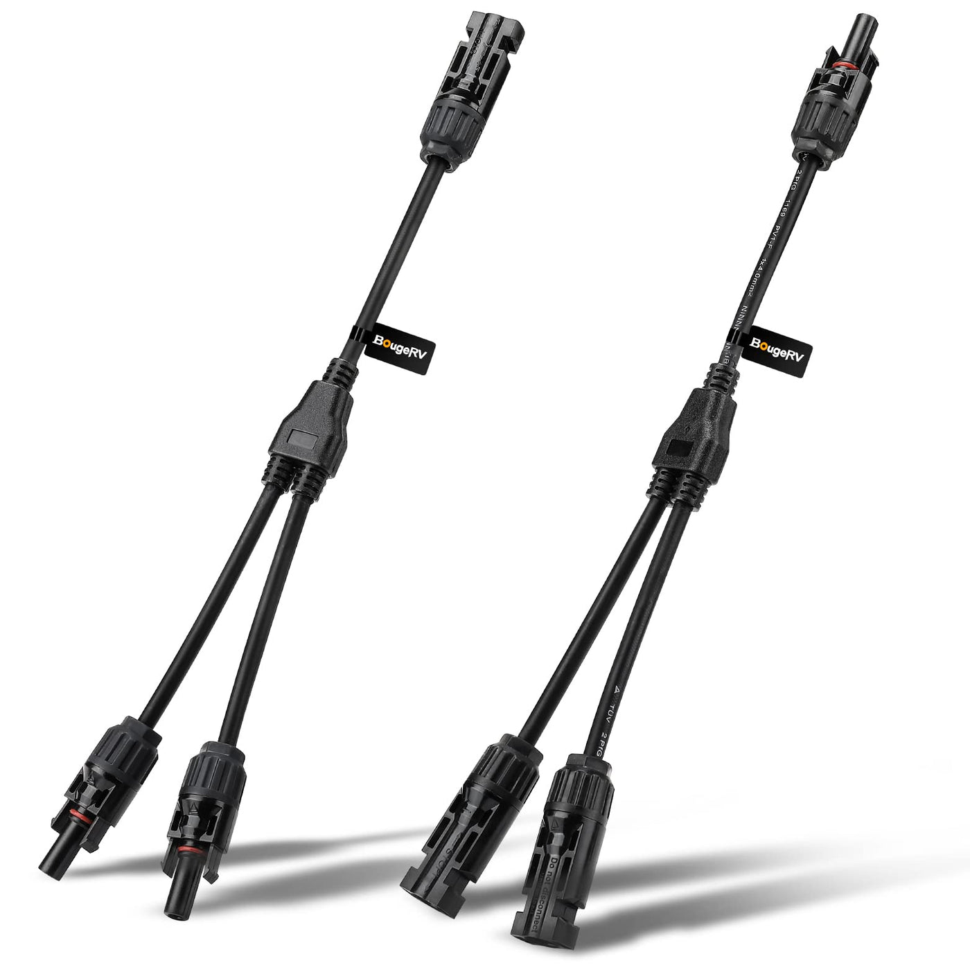 ã€Y Branch Parallel Connector】1 male to 2 female (M/FF) and 1 female to 2 male (F/MM) solar connectors, which can connect 2 solar panels in parallel.