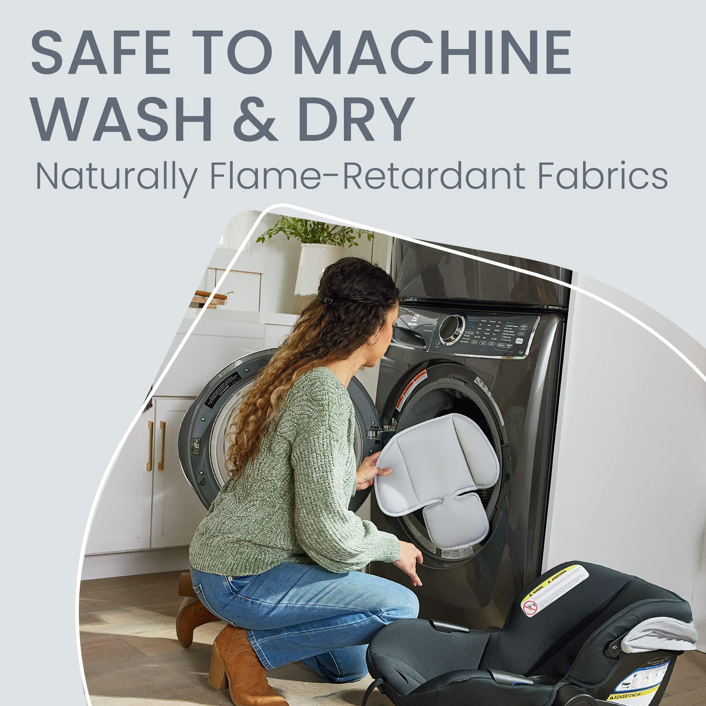 - WASHER AND DRYER FRIENDLY: The SafeWash car seat cover and stroller insert only are naturally flame-retardant and safe to machine wash and dry