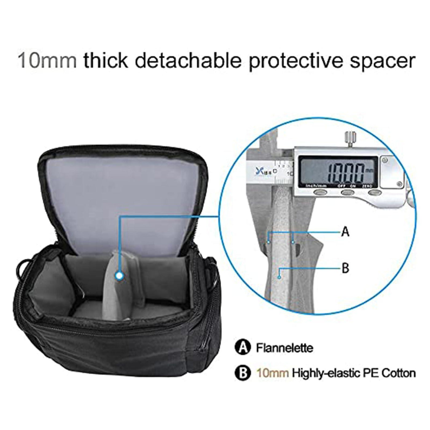 - 【Perfect Design and Good Quality】①600D high-density nylon, waterproof and wear-resistant; 10mm velcro spacer for shockproof and pressure release;②All the sutures are strengthen make the camera bag more durable;③Zippers are made of alloy metal, which are smooth and no rust.④Cold and heat resistant hooks are durable and not easy to break.