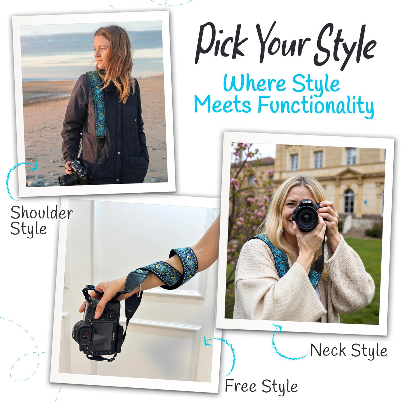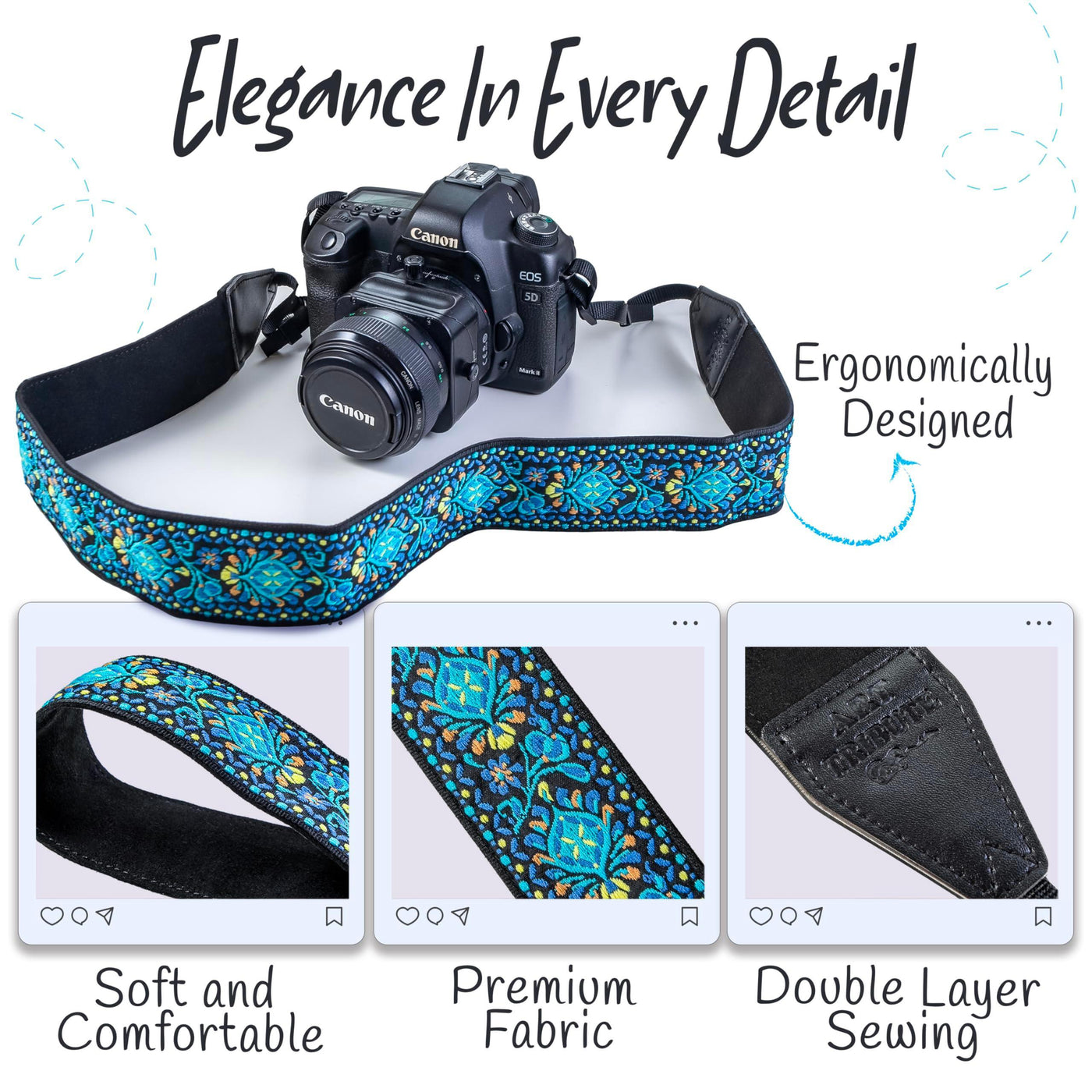- CRUELTY-FREE CAMERA STRAP –The camera neck strap is made from soft, high-quality vegan fibers and embroidered with lots of love!