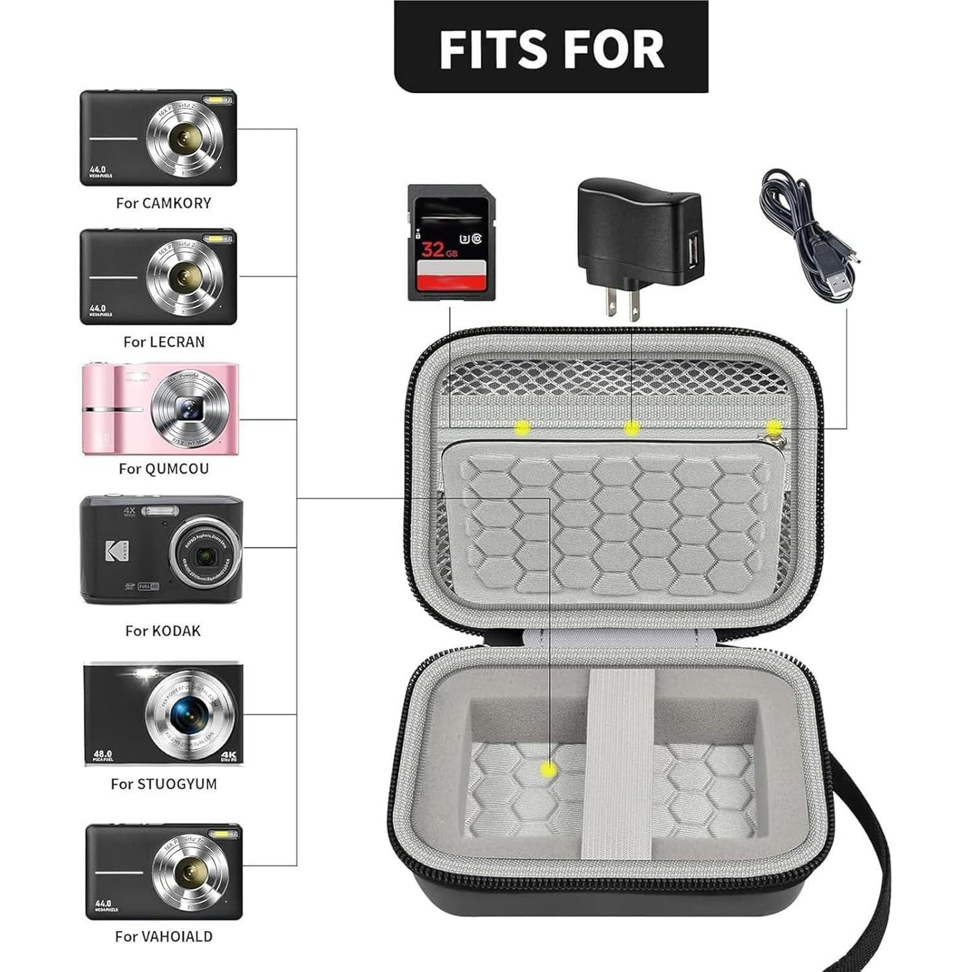 Carrying & Protective Case for Digital Camera, AbergBest 21 Mega Pixels 2.7" LCD Rechargeable HD/Kodak Pixpro/Canon PowerShot ELPH 180/190 / Sony DSCW800 / DSCW830 Cameras for Travel - Black