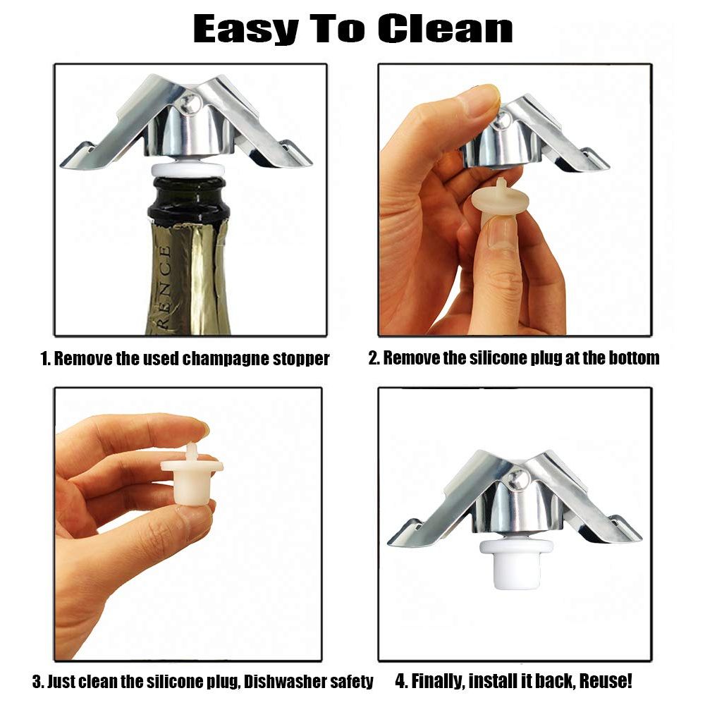 - Our Champagne bottle stoppers with longer silicone seal Provide better an air-tight seal to prolong and preserve opened bottles of Champagne.