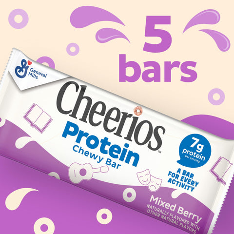 - CONTAINS: One 6.35 oz box of Cheerios Protein Chewy Bars, Mixed Berry, 5 bars