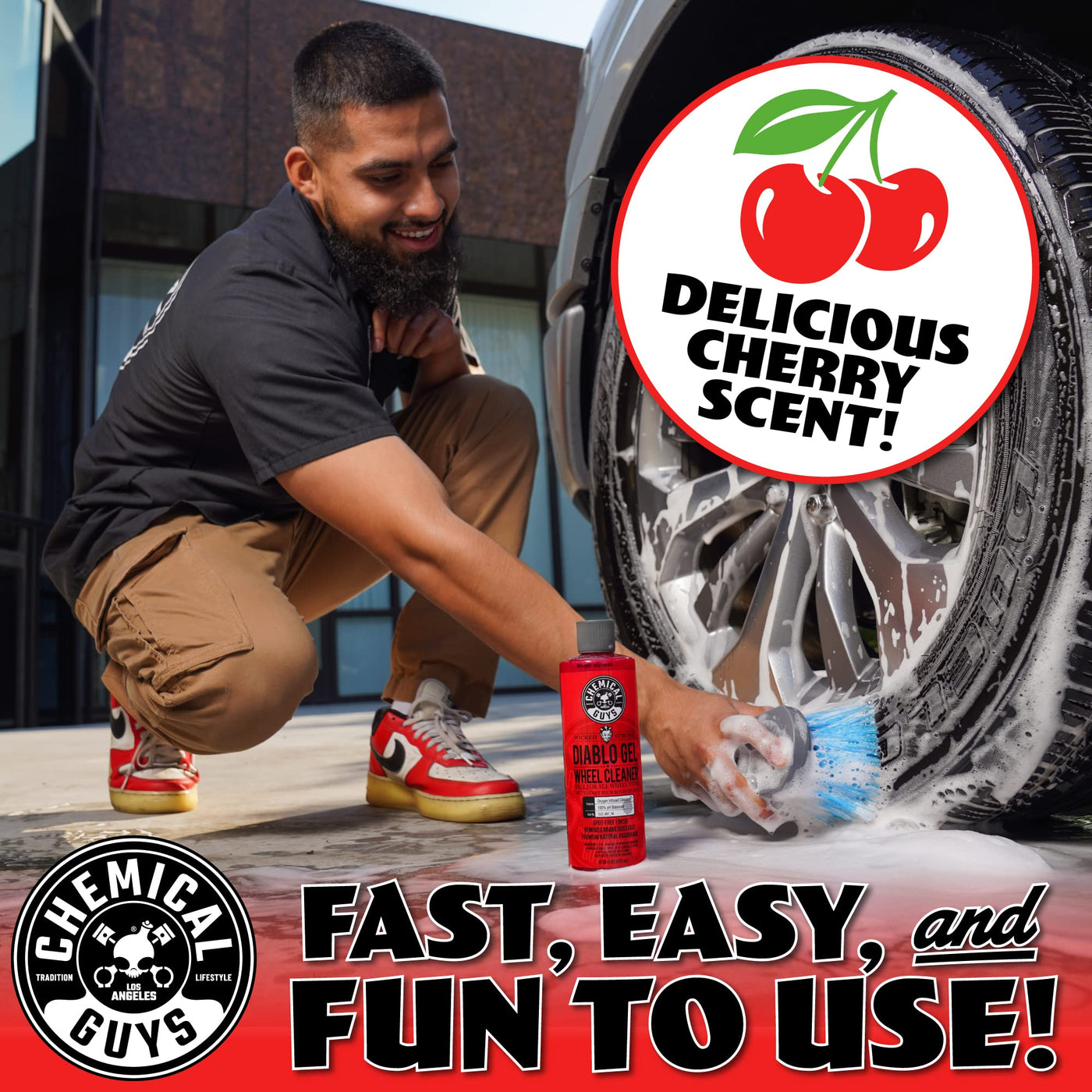 - SAFELY CLEAN ANY TYPE OF WHEEL WITHOUT SCRATCHING - Unlike other wheel cleaners, Diablo Wheel Gel uses no caustic acids or heavy alkaline compounds and won’t harm your shiny wheel finishes while your clean! The advanced foaming formula safely lifts dirt and grime to help prevent scratches and swirls!